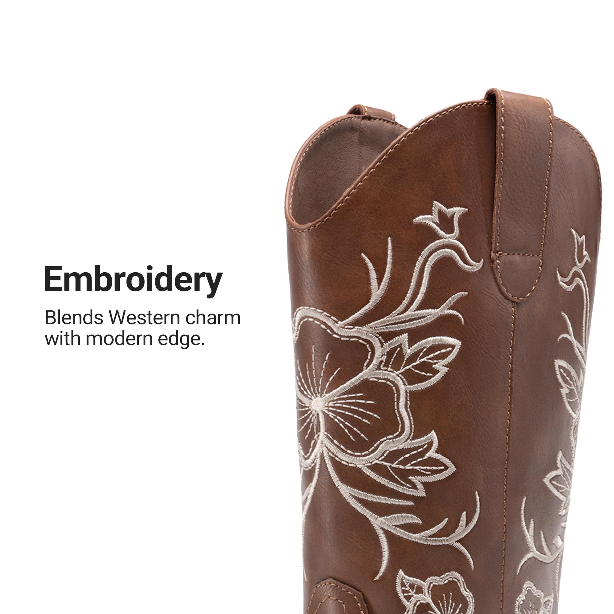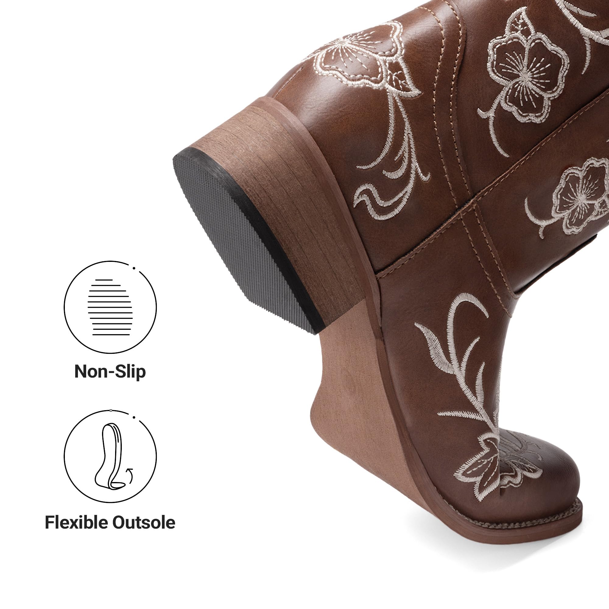 Classic Western Look: These boots for women bring an easy Western vibe with pretty floral embroidery that adds subtle personality to your everyday outfits.