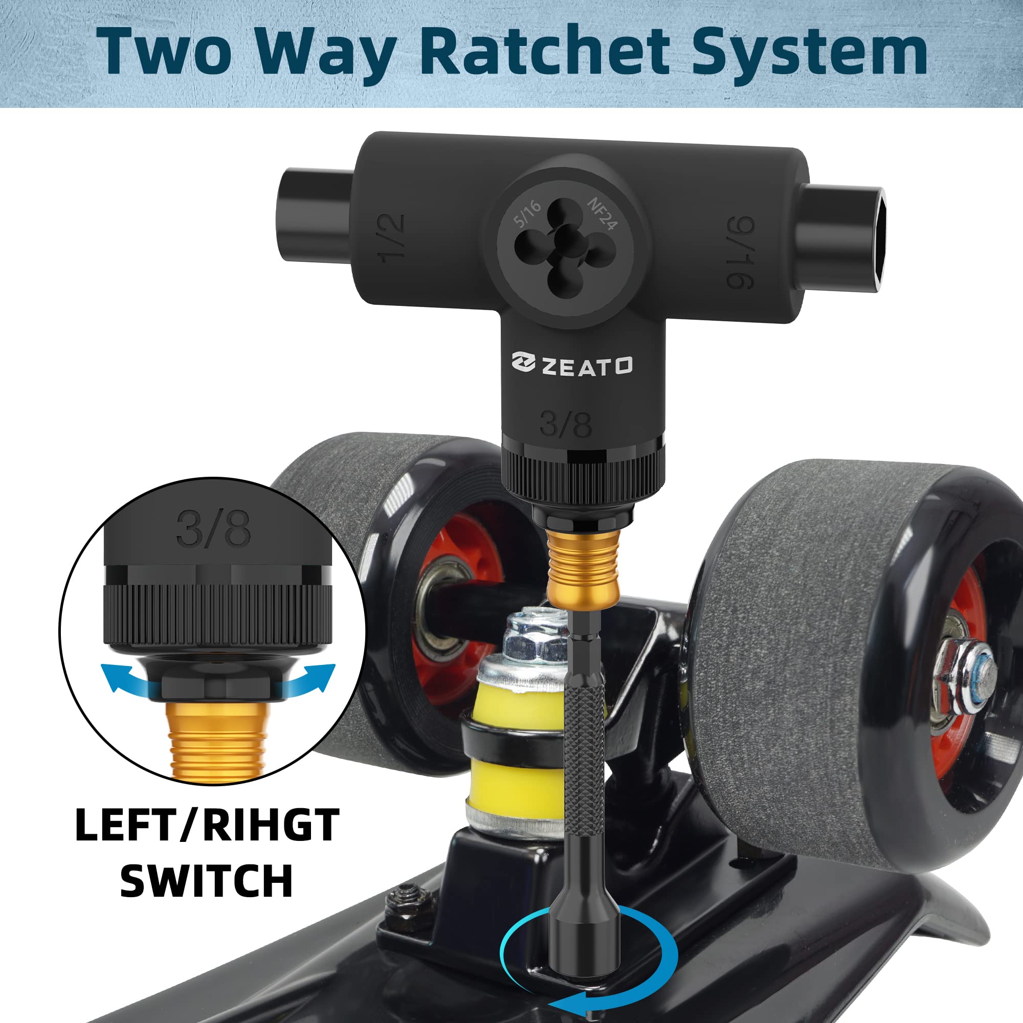 [Multi-functional Tool]: A multi functional skateboard T tool that allows you to adjust axle nuts, mounting hardware, and the kingpin nut on the top of the truck; which is perfect for completing skateboard assembly