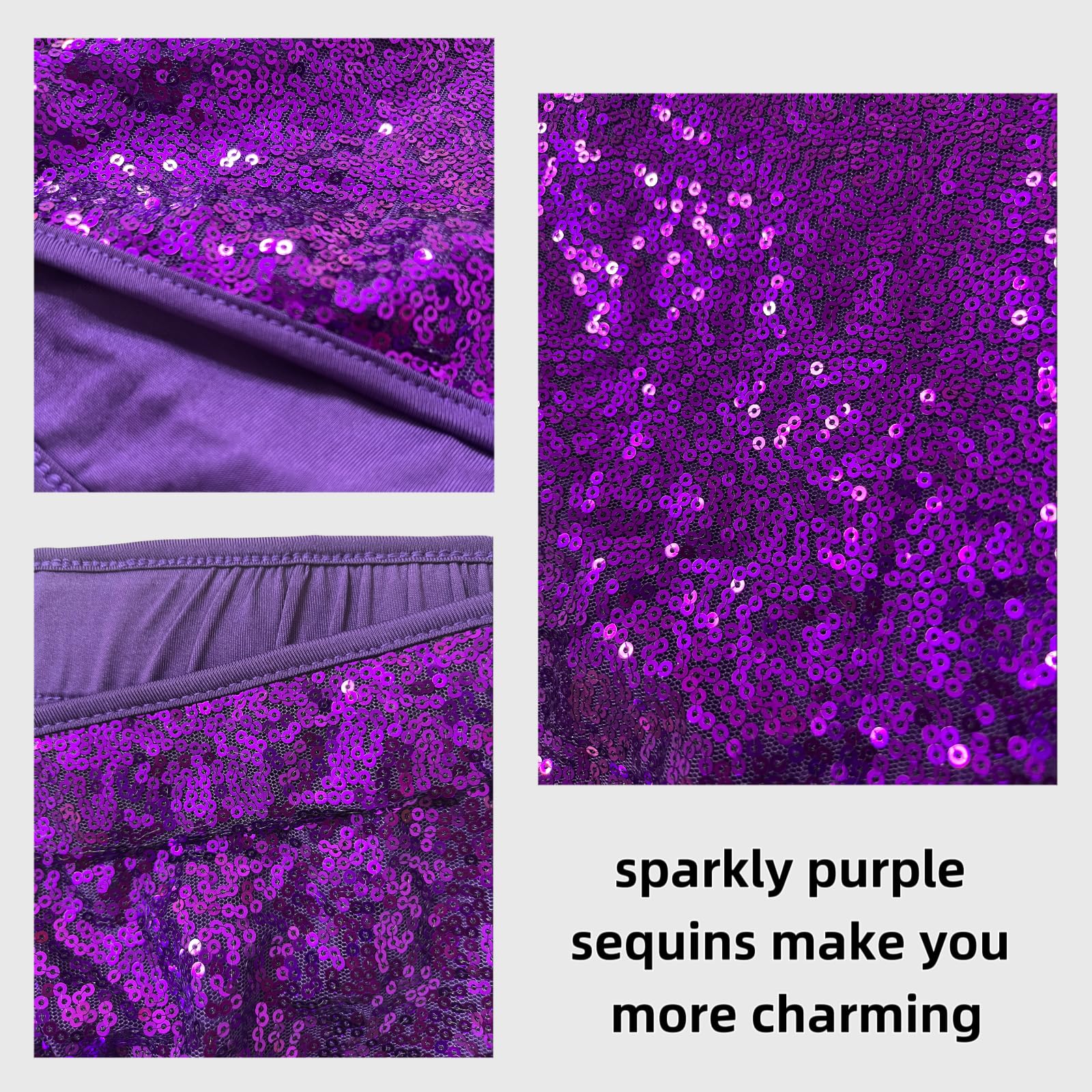 Purple sequin shorts crafted with high-density shimmer sequins and a full soft lining design. No scratchy, itchy discomfort against your skin—just head-turning sparkle for all-day and all-night wear