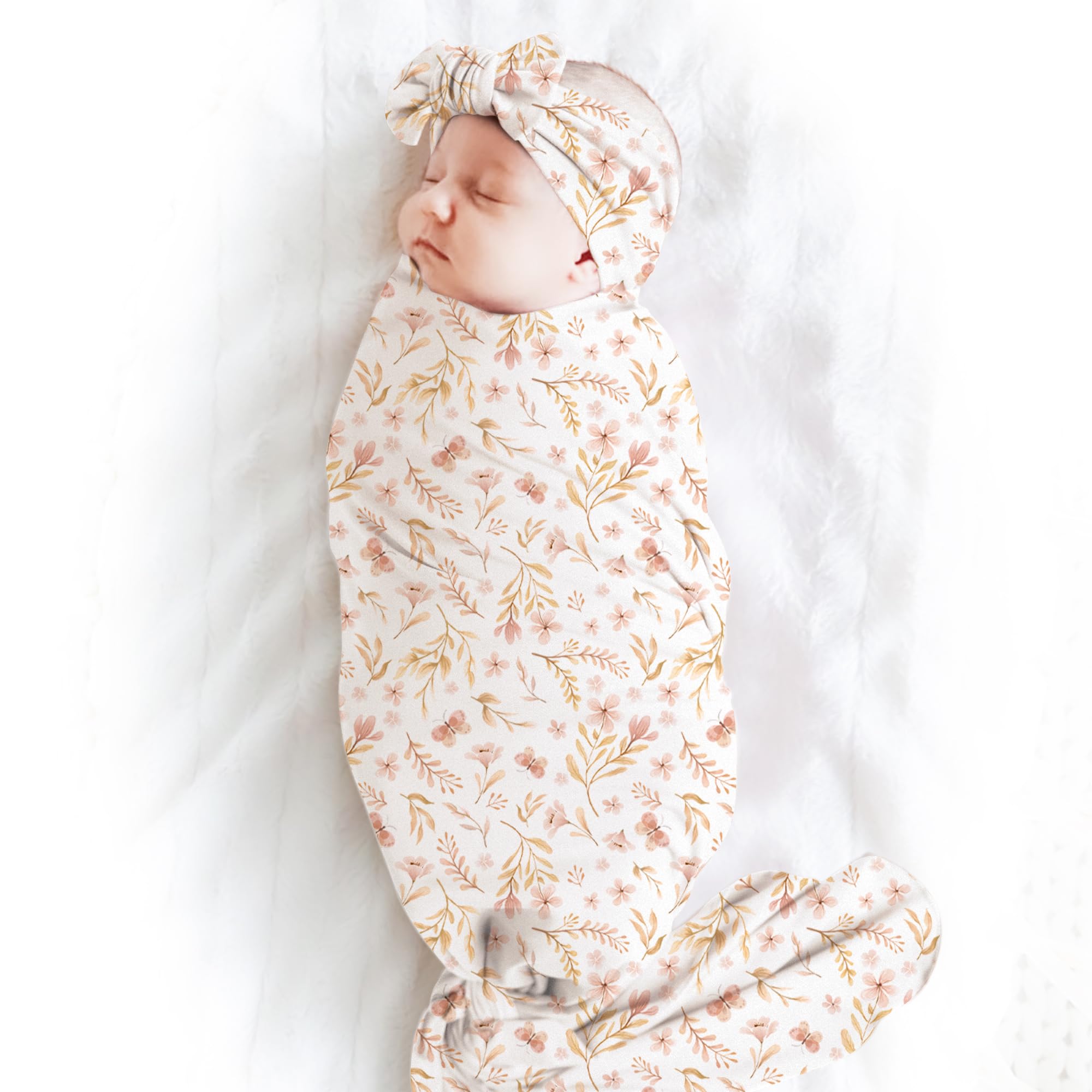 Soft Fabric: This baby girl swaddle and headband set is made of coziest fabric which is ultra-soft, and stretchy for comfort. It is warm and breathable, no zippers, or snaps, more comfortable for your baby's delicate skin. The fabric would be softer as time goes by