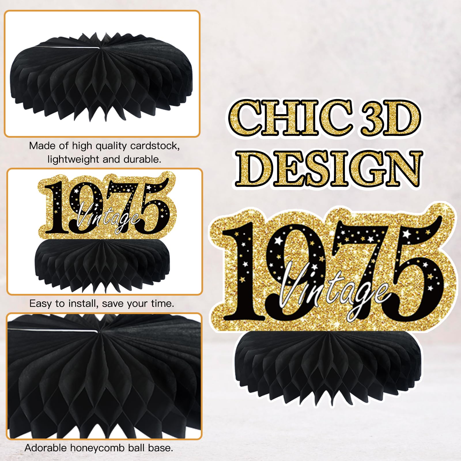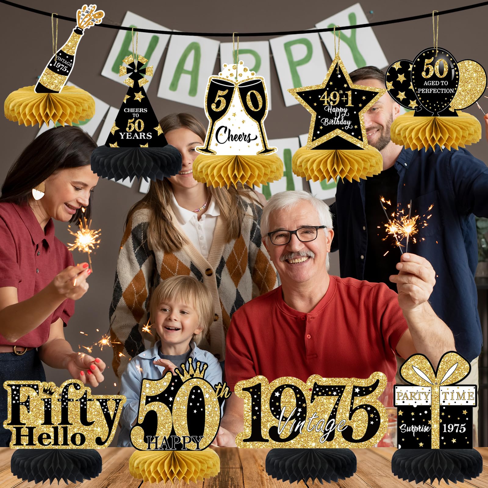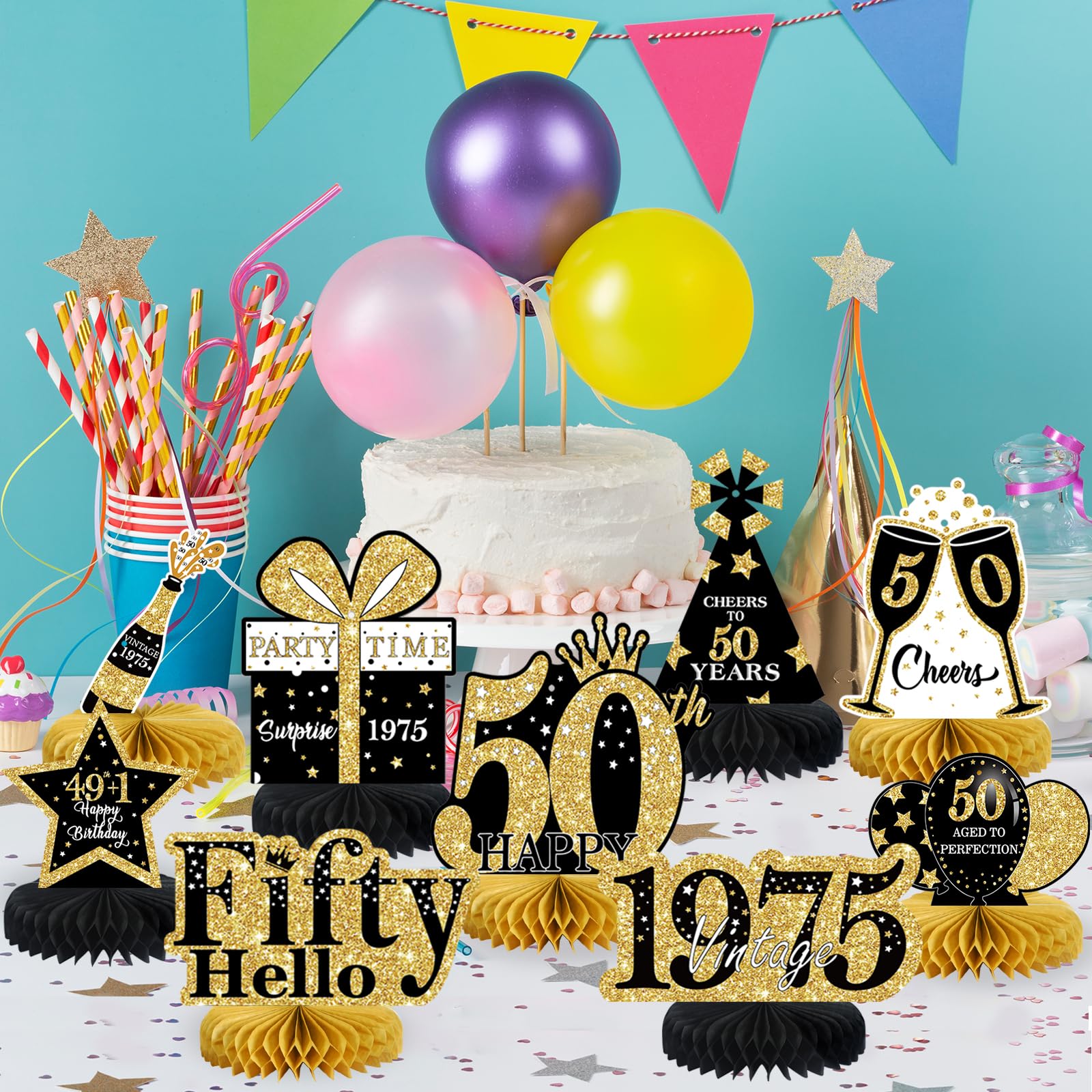 [You will get] - 9 pcs black gold 50th birthday decorations honeycomb table centerpieces for women men, it contains 9 patterned cardboards and 9 paper honeycombs (4 black and 5 gold),and matching lanyards. These chic 50th birthday table decorations are enough to decorate your themed party.