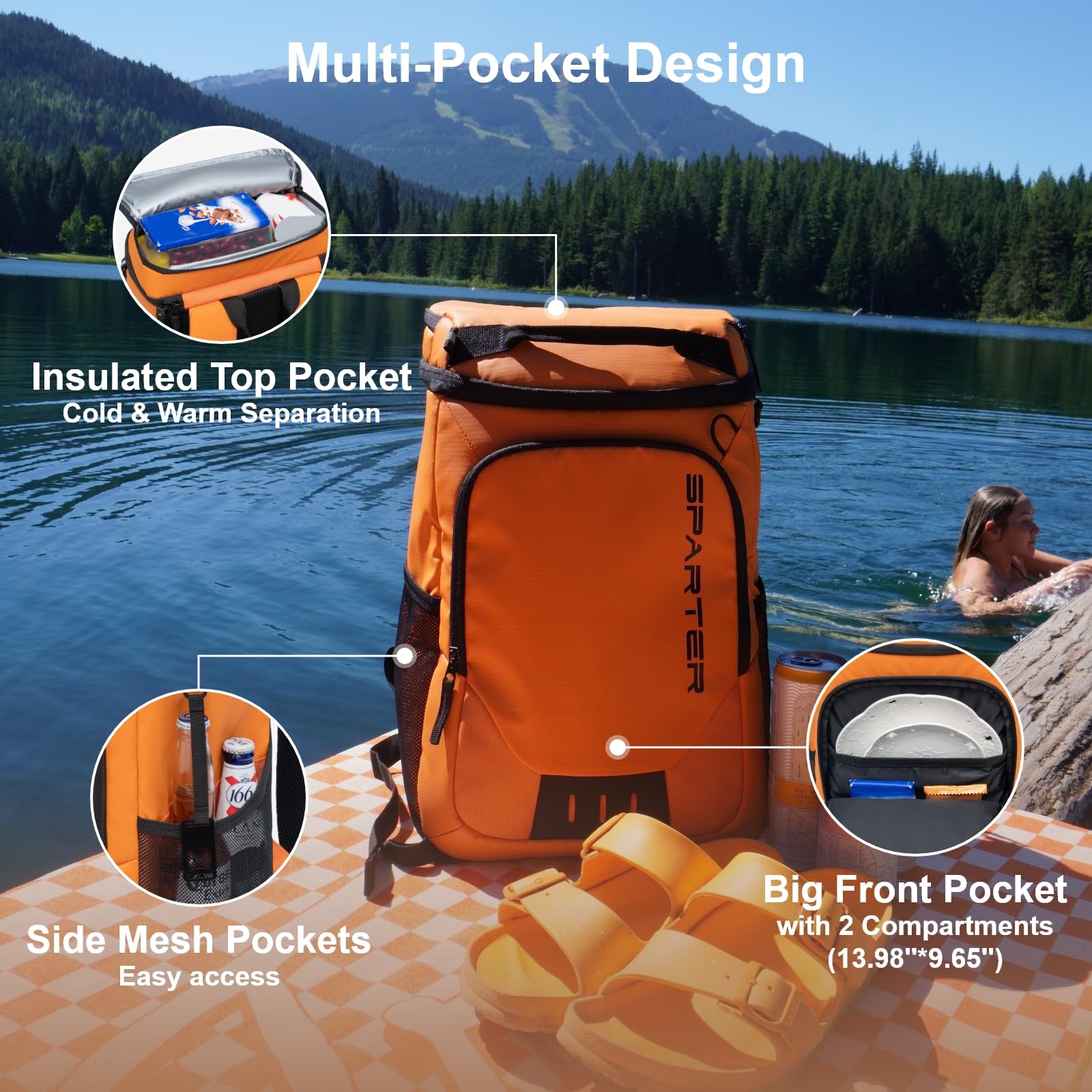 20 Hours Retention: Sparter backpack cooler is insulated with thickened 8 mm foam, together with advanced silver PEVA seal to keep beverages cool up to 20 Hours throughout the day for beach picnic, hiking, camping, trip, boating, baseball / golf and work.