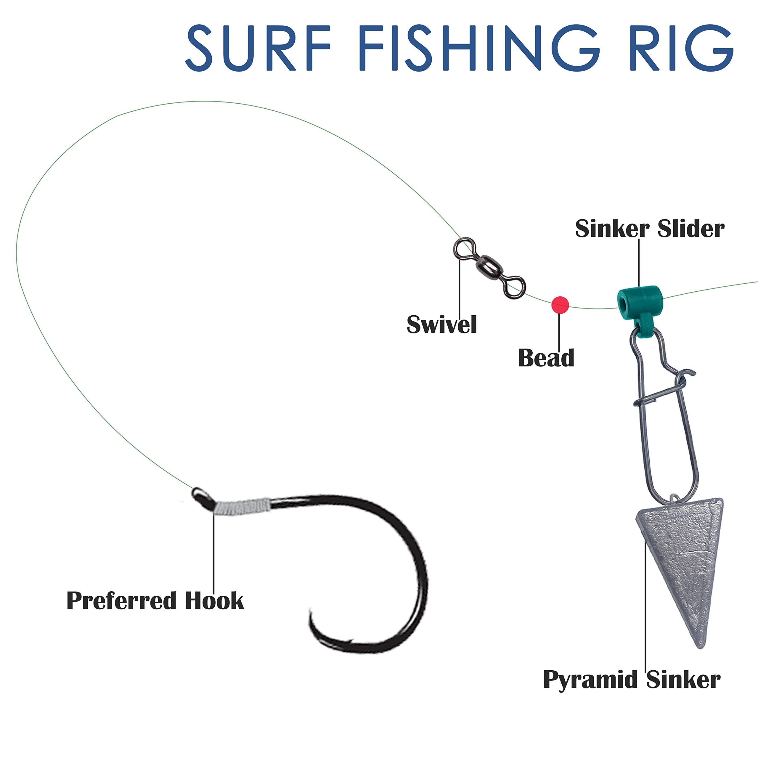 Available sizes of 1oz, 2oz, 3oz. Excellent for surf fishing and pier fishing. Pyramid sinker holds well in sandy bottoms, and also hold well in rough currents like the surf