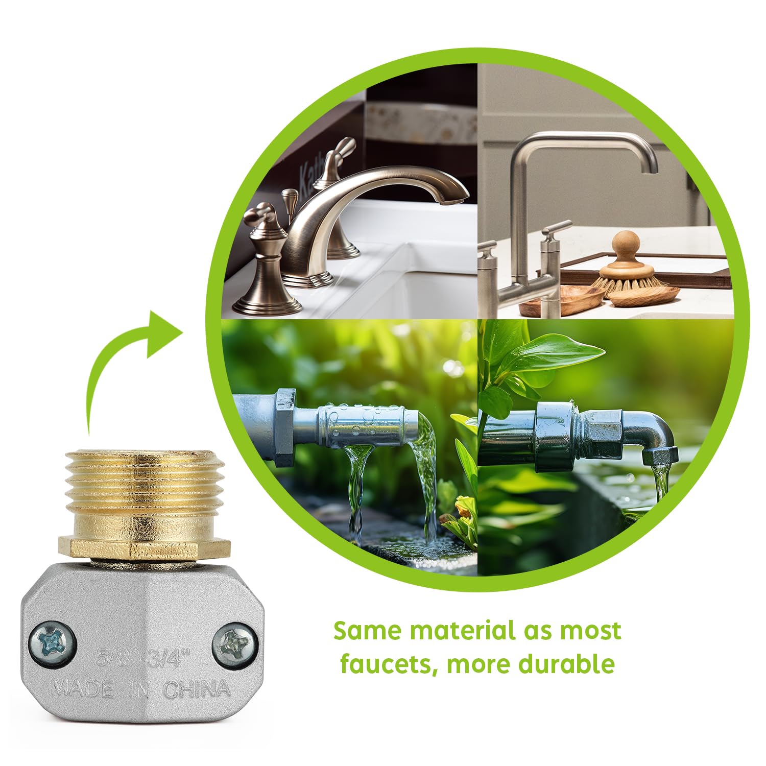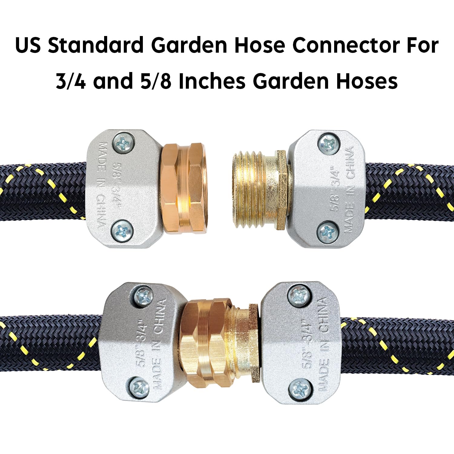 PACKAGE INCLUDES -- 1 female hose repair connectors, 1 male hose repair connectors, 2 zinc alloy clamps and extra 2 garden hose washers.