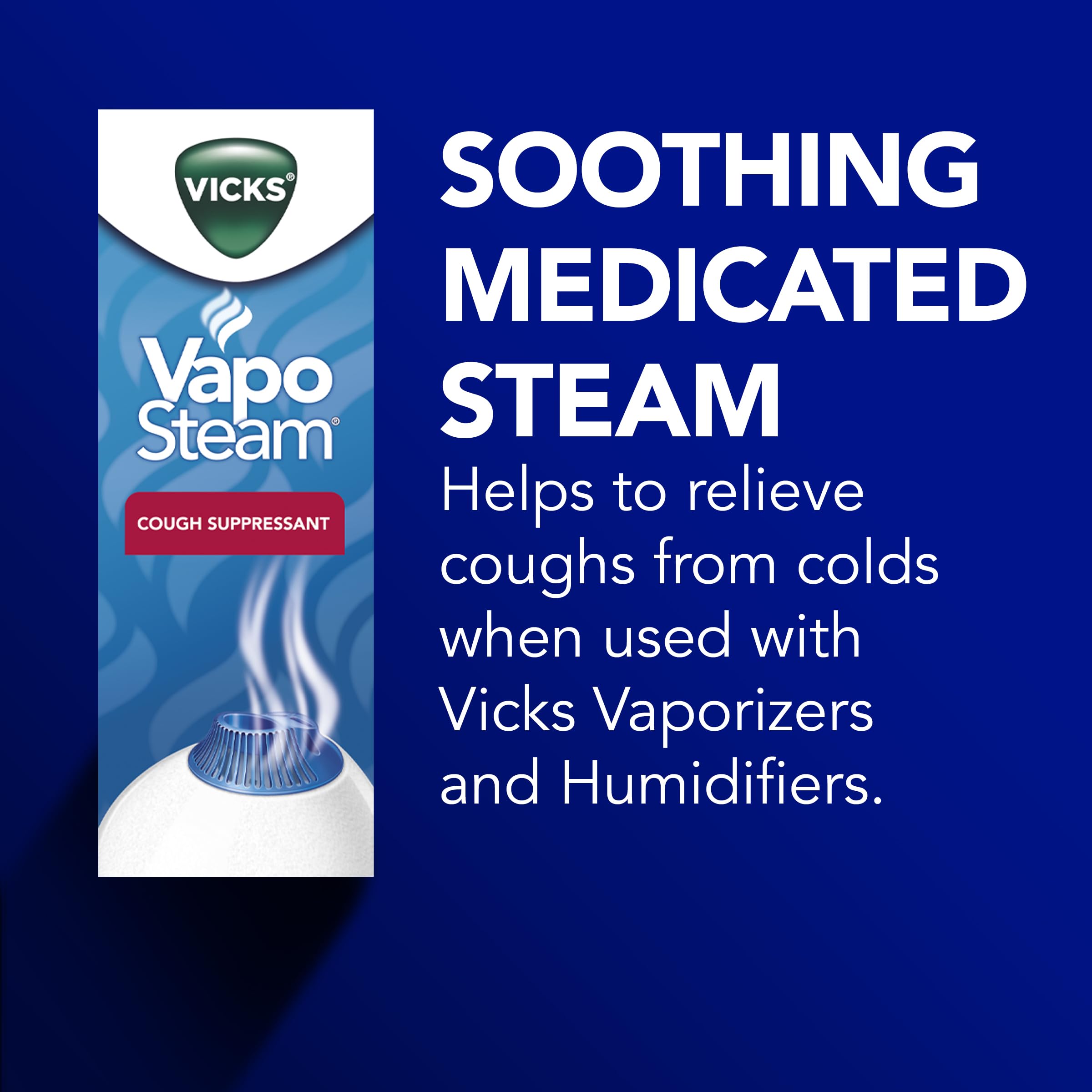 Suppresses Coughs – Creating a medicated steam is as simple as adding the Vicks liquid to your vaporizer or warm steam humidifier. Only for use in vaporizers and humidifiers, do not take orally