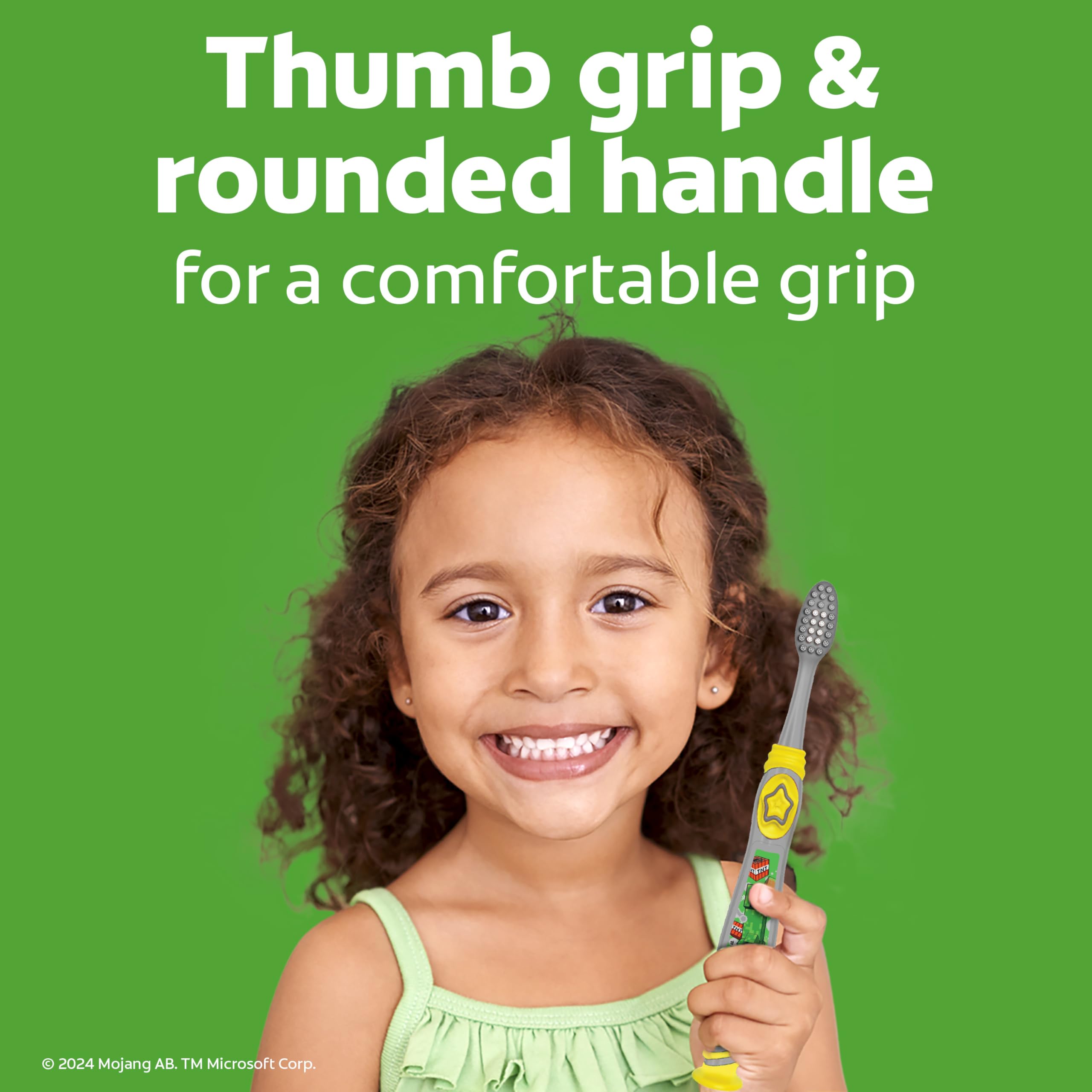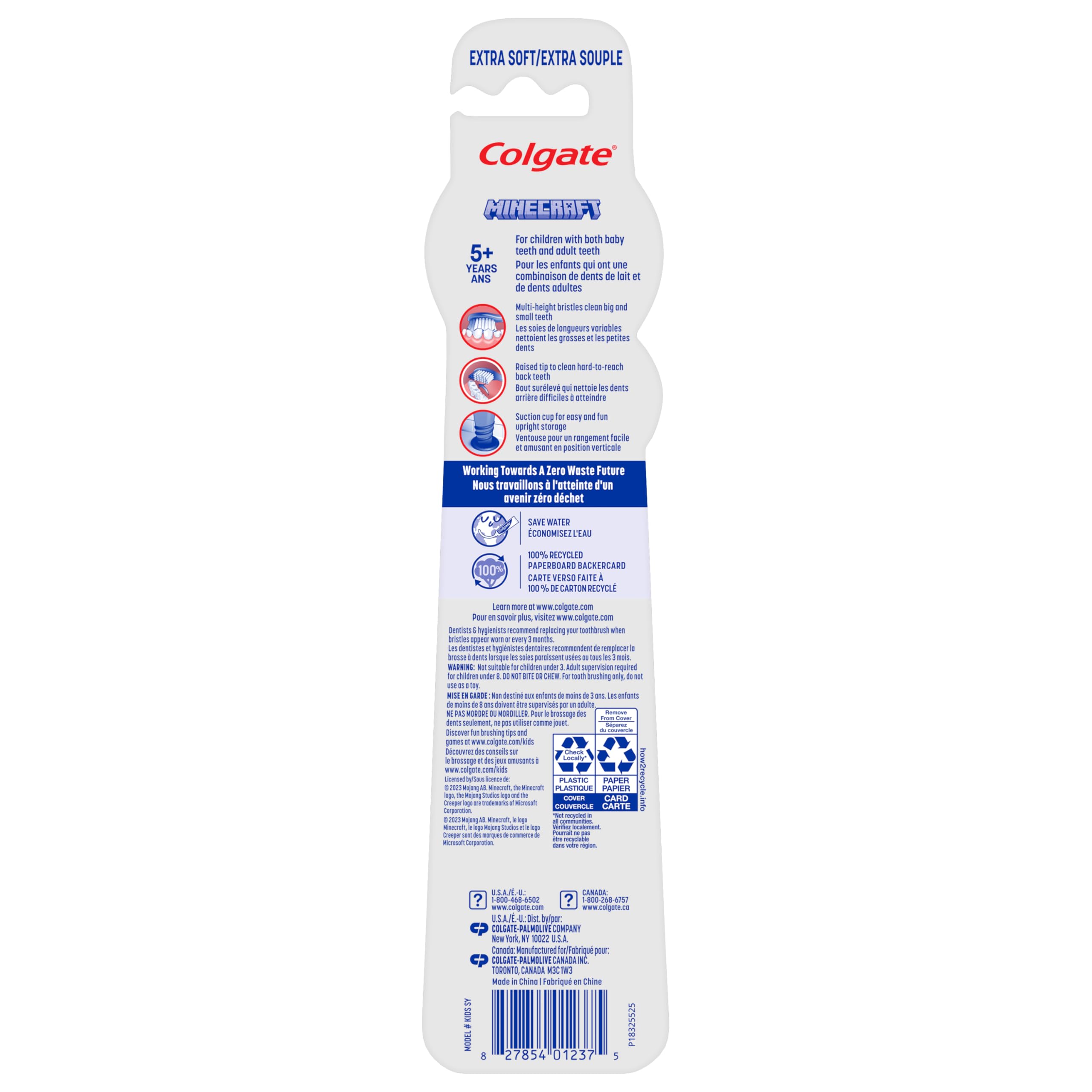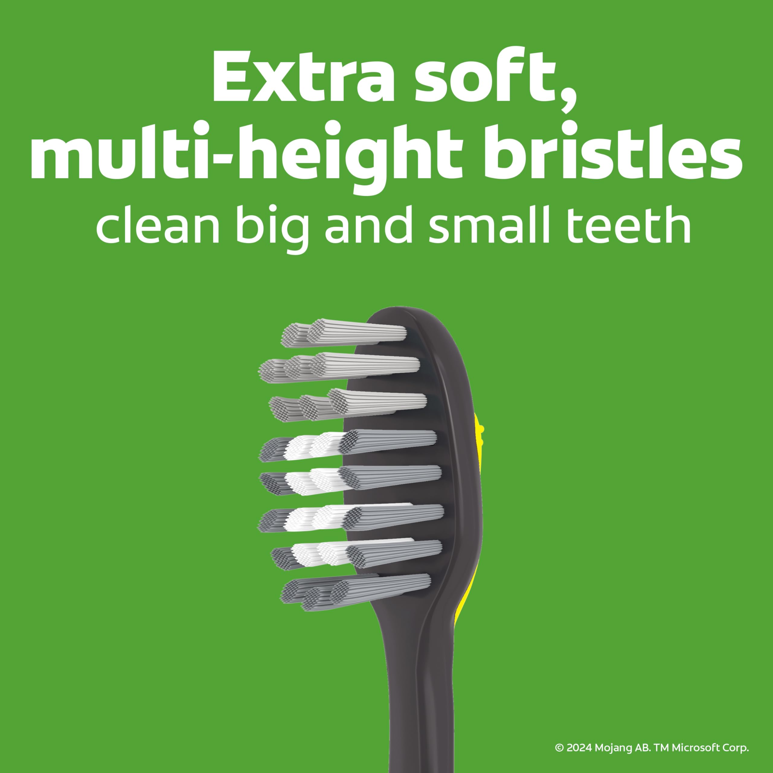 Includes two (2) extra soft bristled Colgate Kids Manual Minecraft Toothbrushes