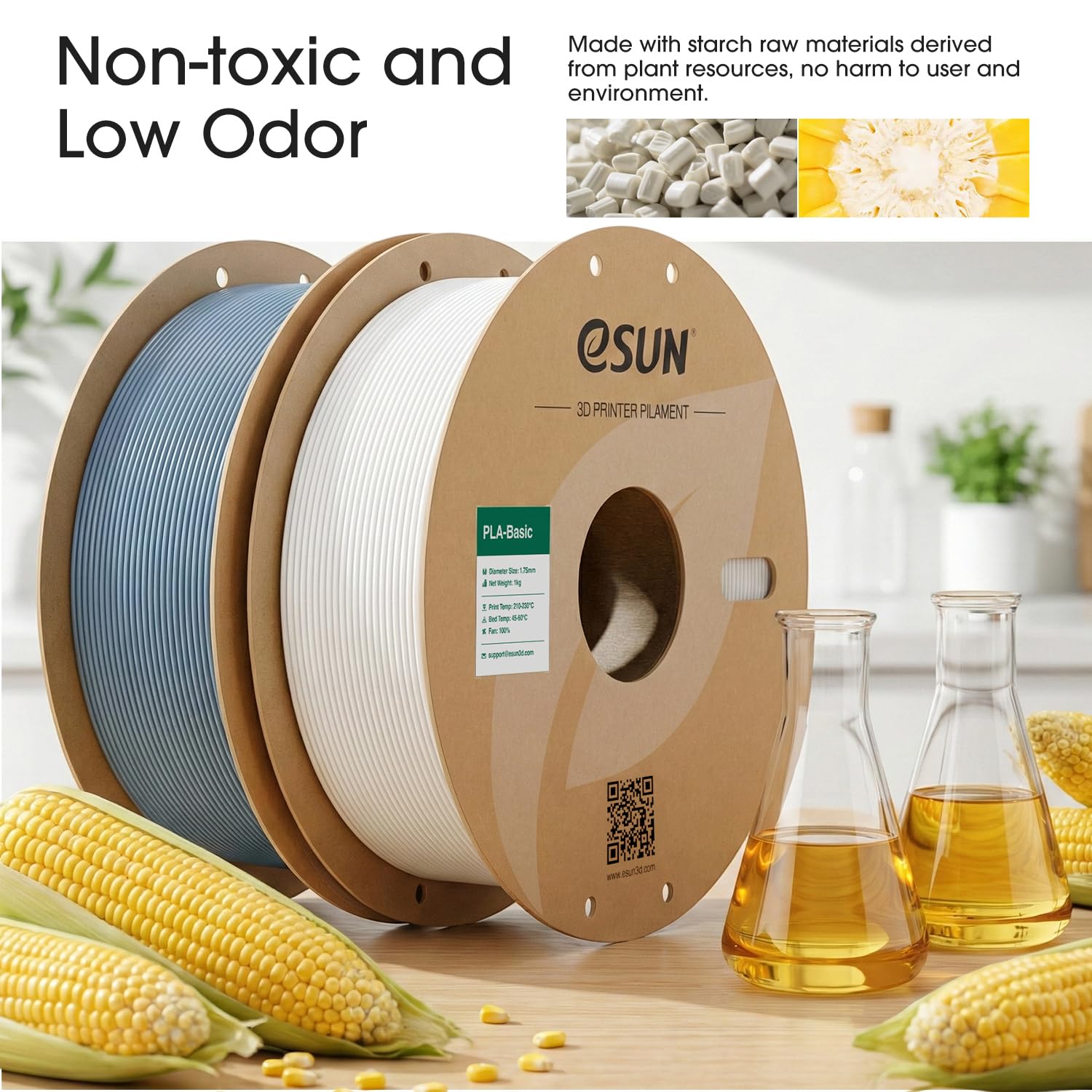 【Easy To Print】No bubbles, less stringing, high successful printing rate. Low Odor. No warping, low shrinkage, no deformation, no cracking. High printing precision and good molding effect. Made with starch raw materials derived from renewable plant resources.Widely used in cultural creativity, animation industry, film and television props and other fields.