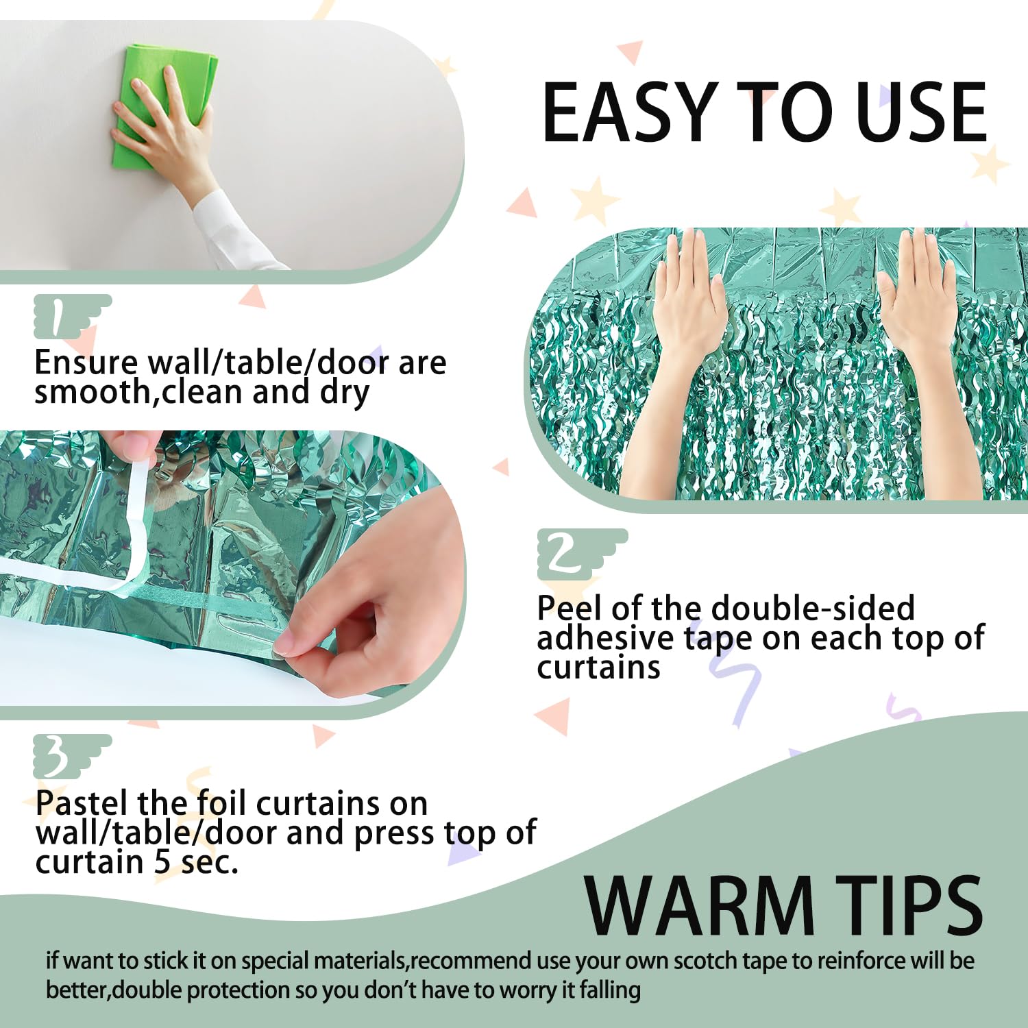 Package Included: 3 packs teal fringe backdrop, the size of 3.3*6.6ft,It's long enough to fit any occasion,Please do not stick the foil curtain on uneven or stained walls to prevent it from falling off!!!