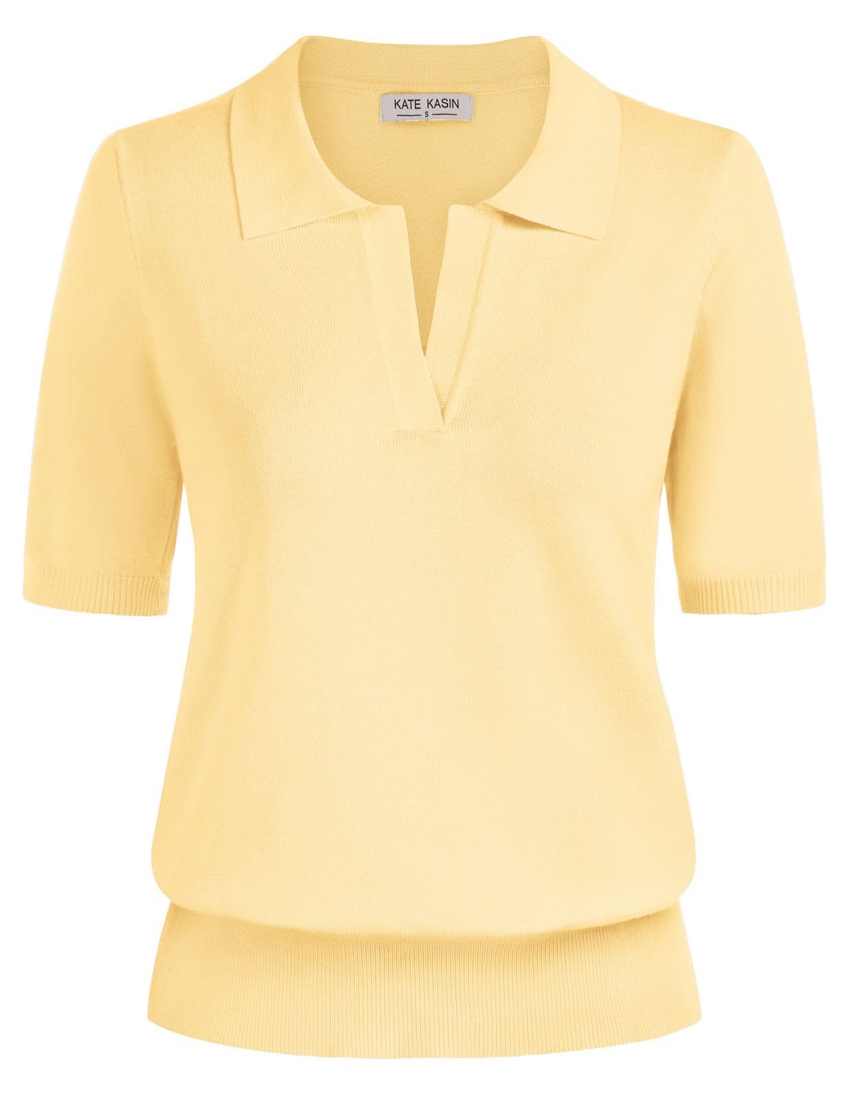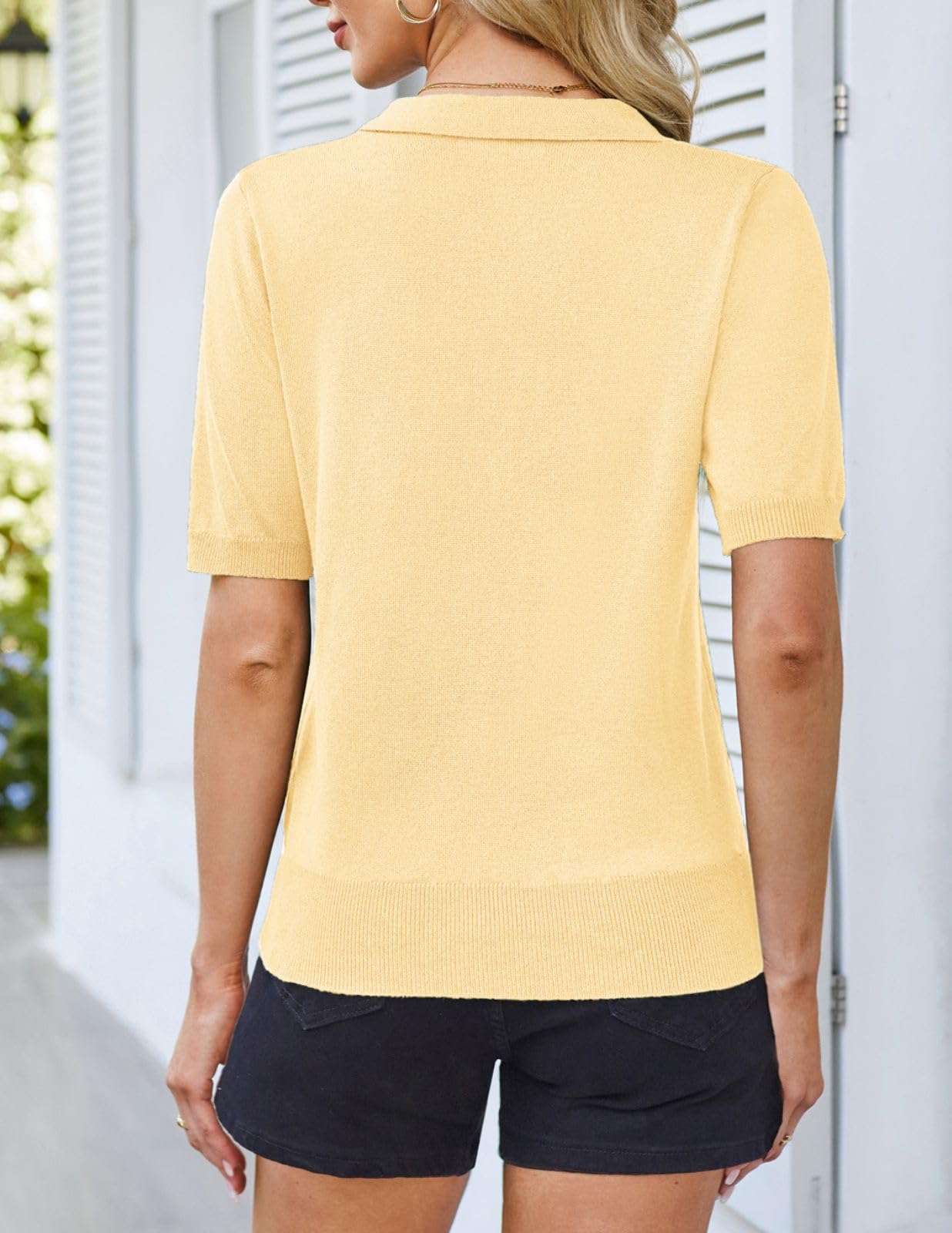 Features: V-neck, short-sleeve, loose, casual, solid color, ribbed knit pullover. The classic lapel sweater never goes out of style