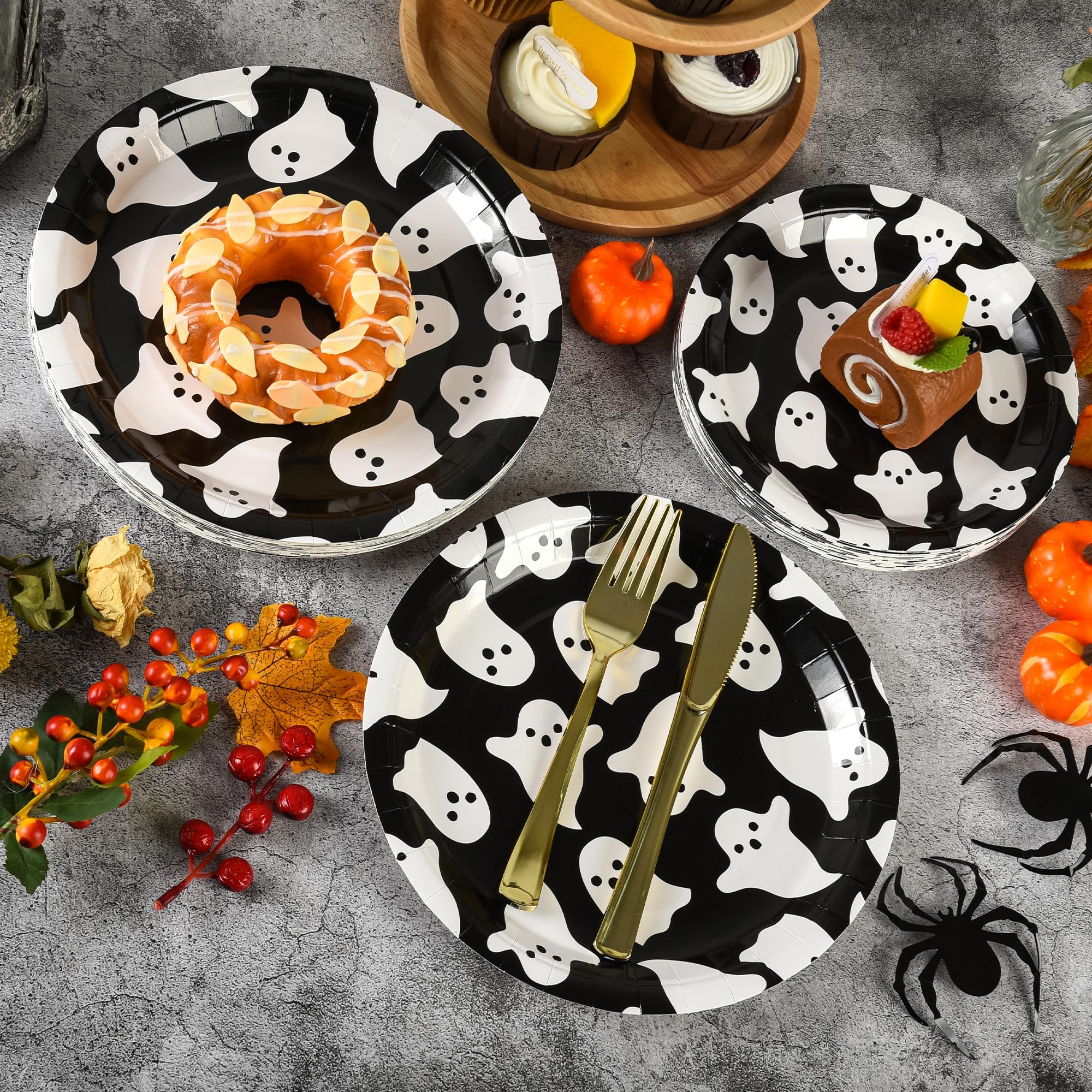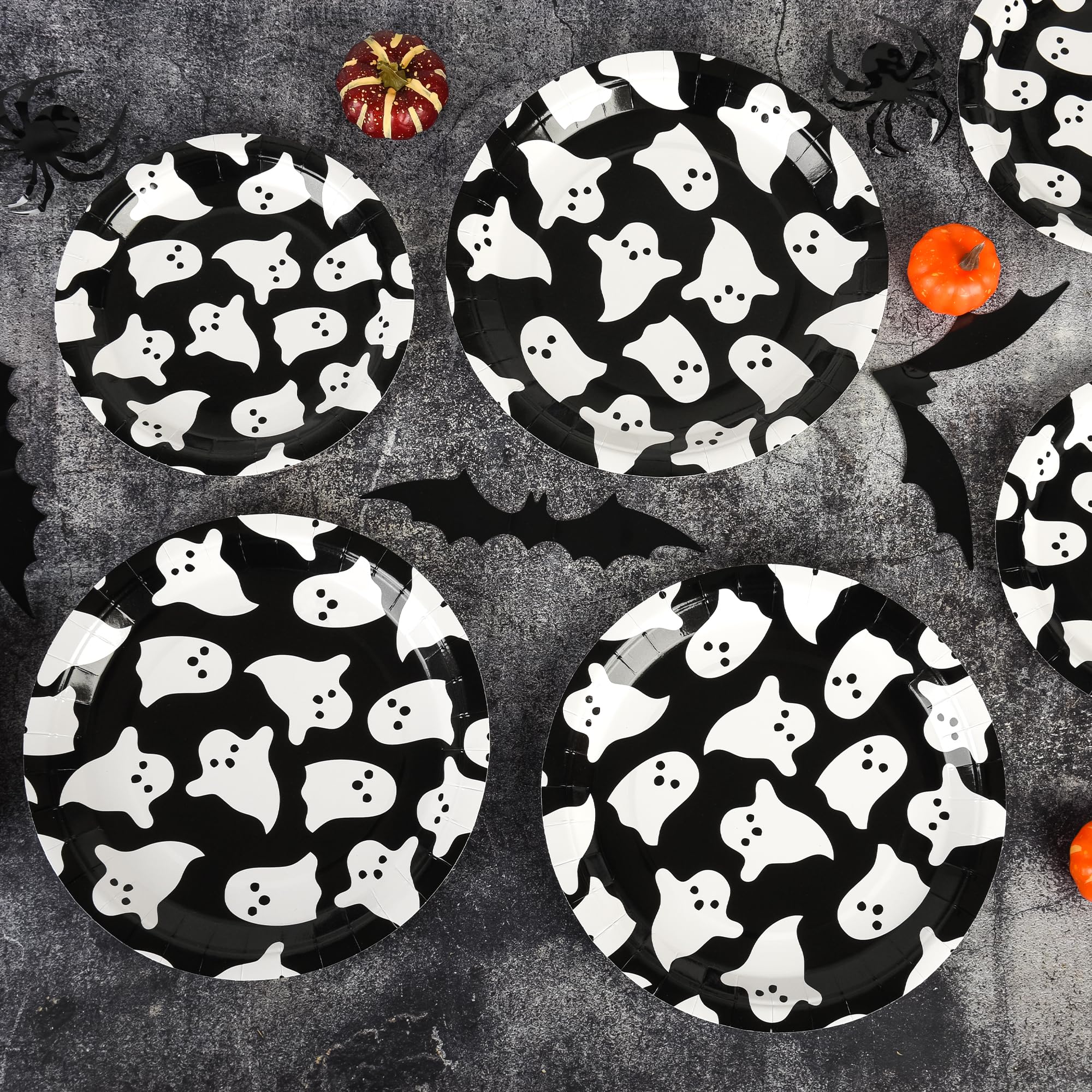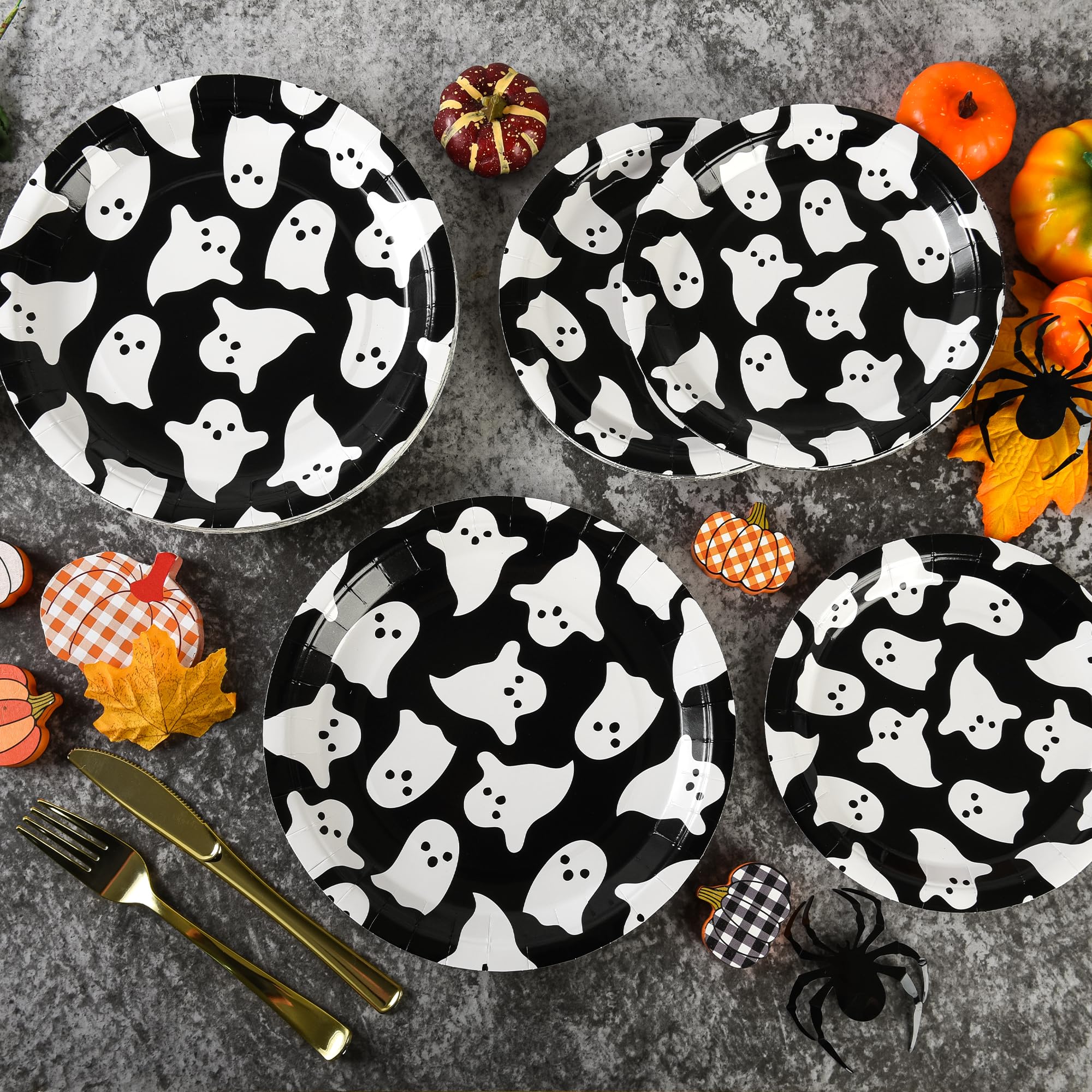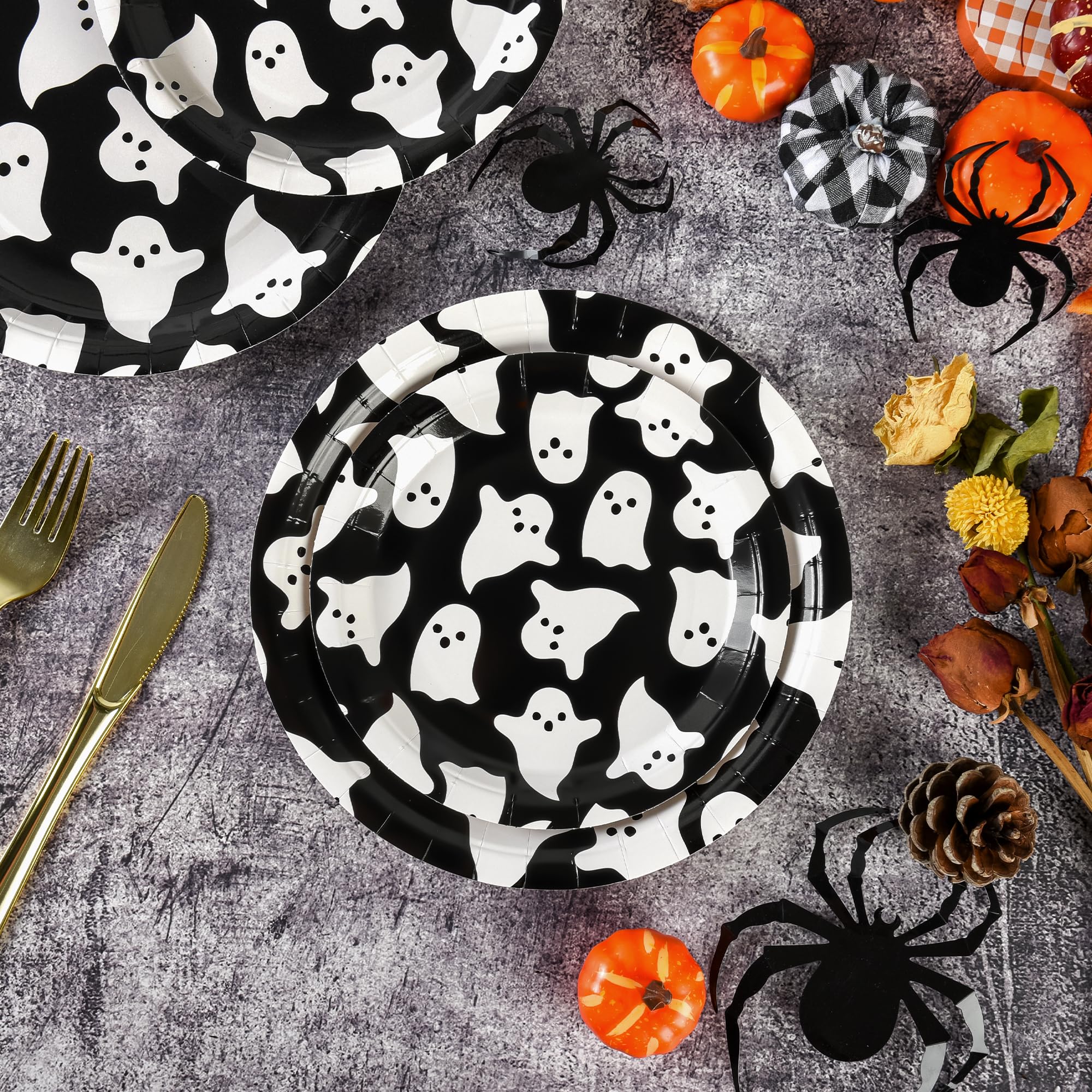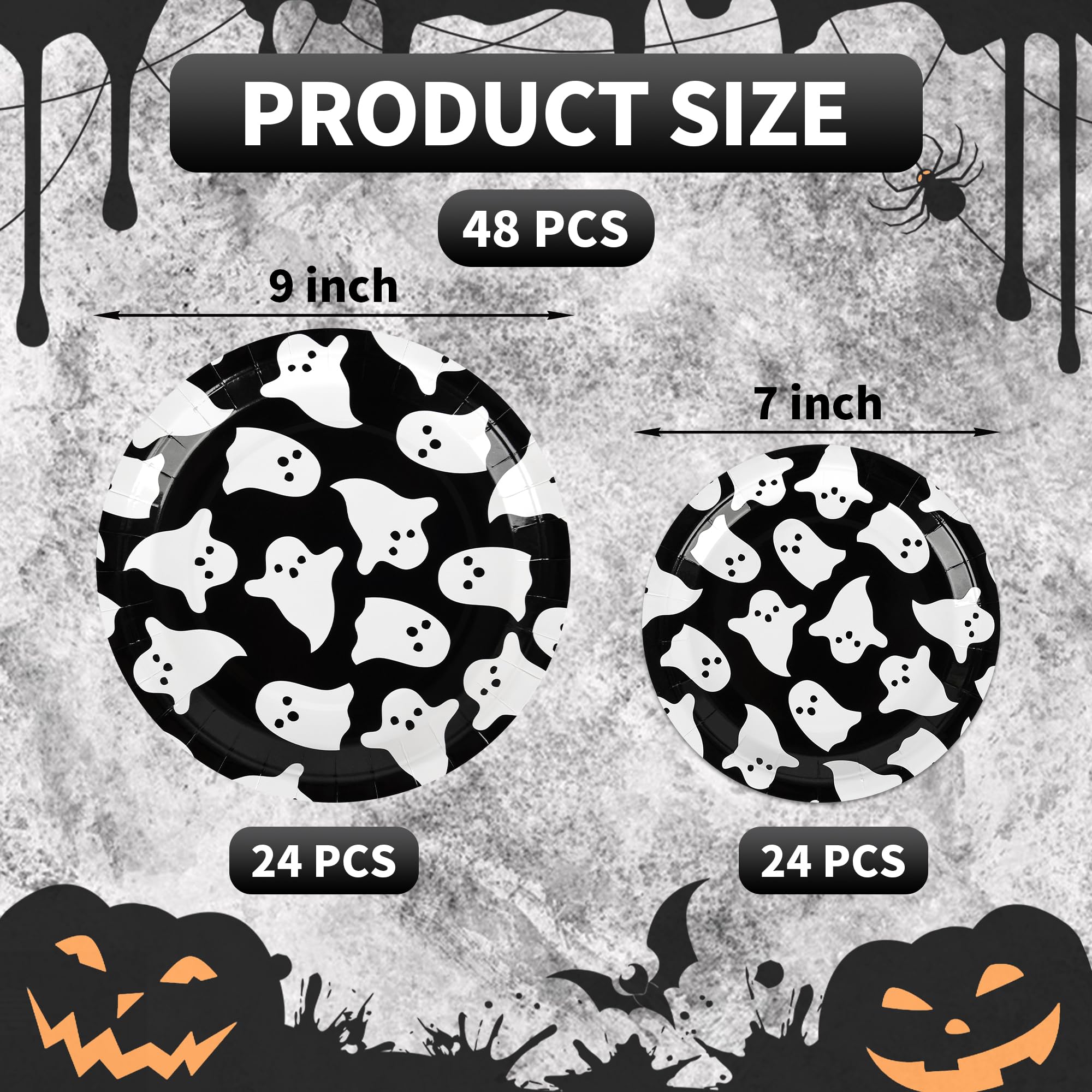 Sufficient Quantity: You will receive 48 pieces of Halloween themed party plates in white ghost styles, Including 24 x dinner paper plates๏ผ9"๏ผ๏ผ24 x dessert paper plates๏ผ7"๏ผ, perfect for your Halloween party or autumn theme party.