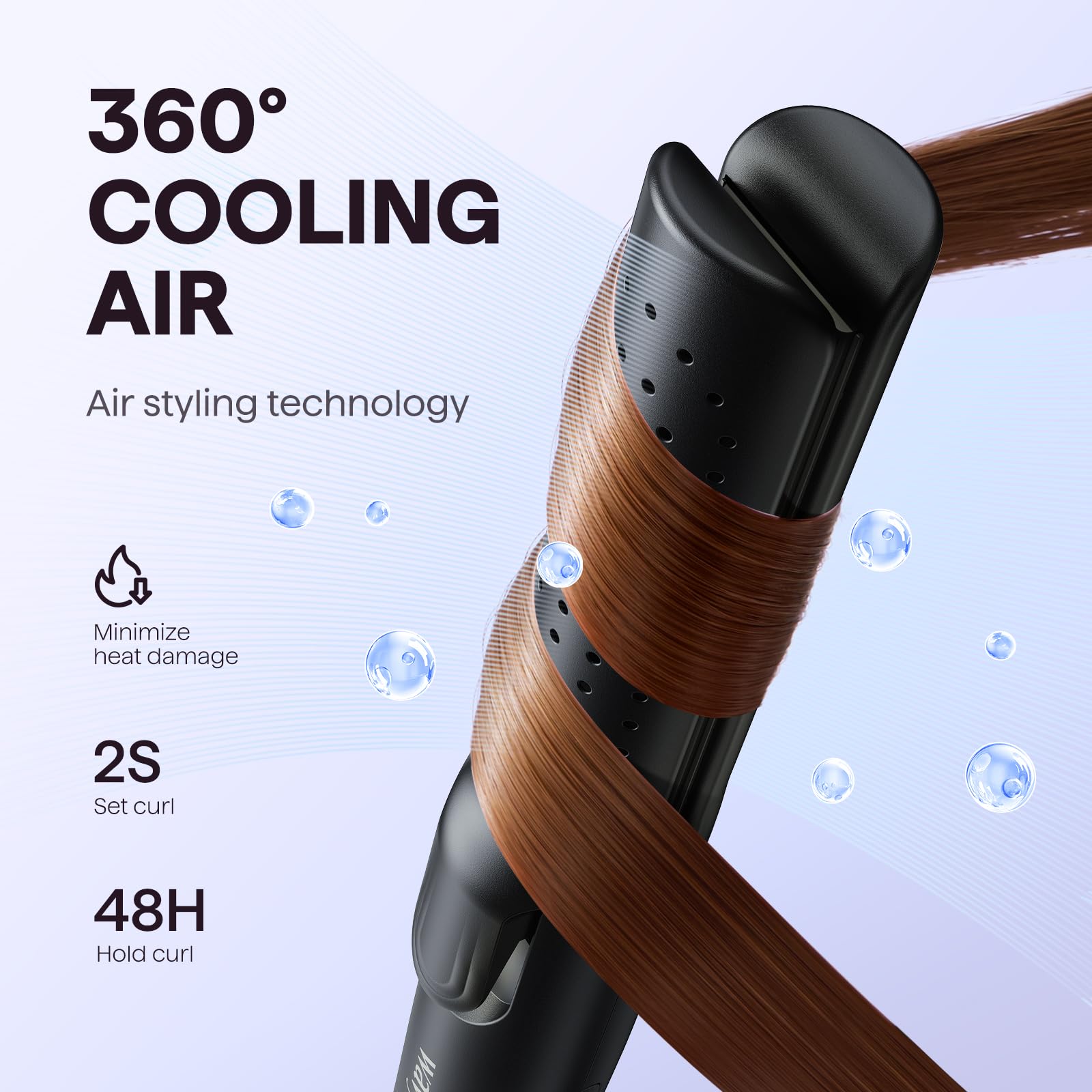360° Airflow for Longer-lasting Styling: Wavytalk airflow styler curling iron features 140 cooling air vents, allowing cold air to surround the hair strands in a 360° fashion during the styling process, reducing heat damage and locking in style and shine while enhancing the durability of the curls