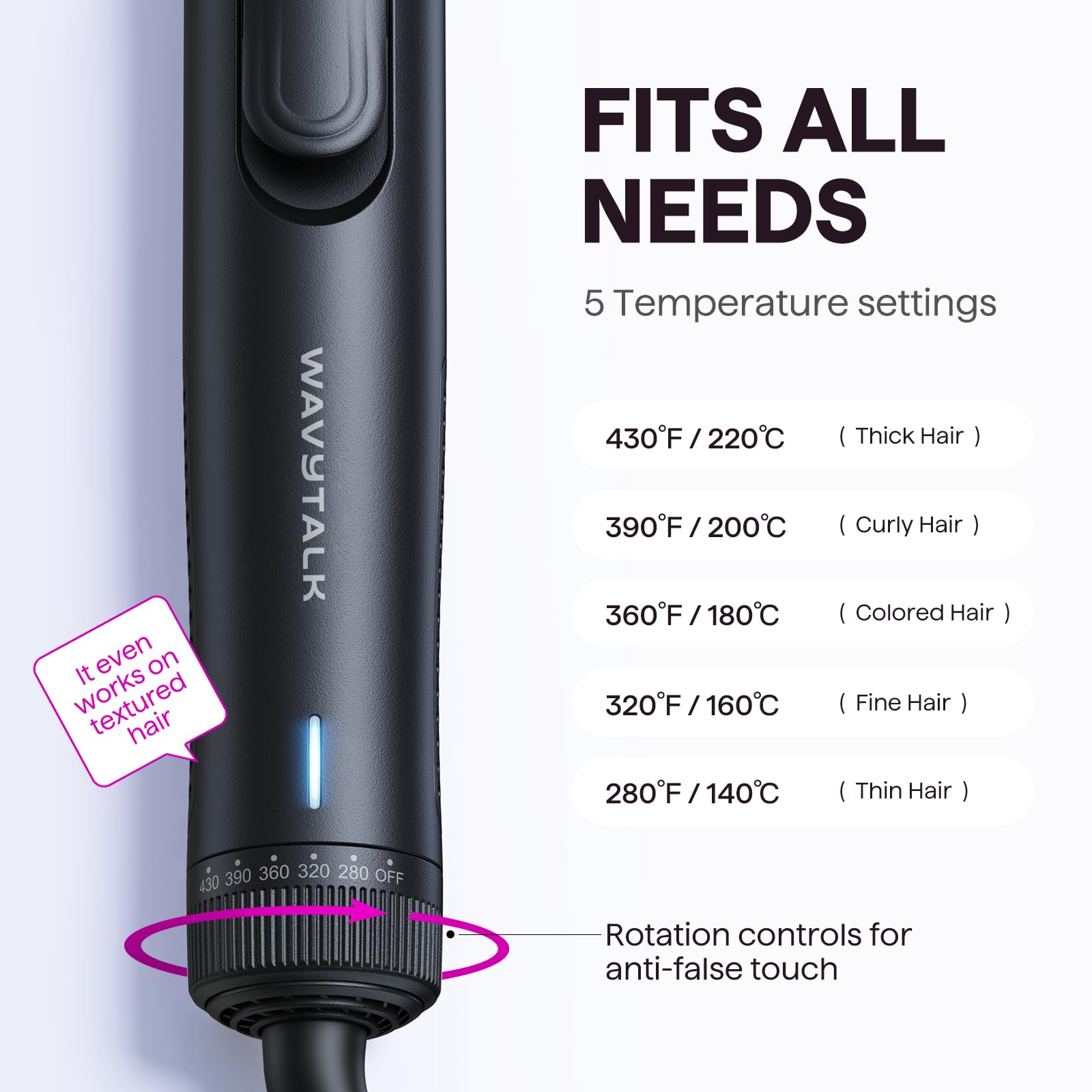 Experience Swift Heating & Precision - Elevate your styling game with the wavytalk Airflow Styler curling iron. Boasting rapid heating and 5 adjustable temperature settings. The integrated PTC sensors, say goodbye to hair damage from excessive heat or heat loss—achieve salon-quality hair without compromise