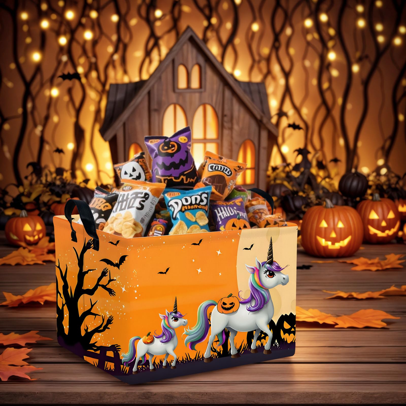 Spooky Halloween Themed Design for Festive Fun: Featuring classic Halloween-themed prints such as bats, pumpkins, and skulls, this Halloween basket enhances the festive atmosphere of any party. It’s perfect for creating joyful memories and adding a fun touch to your Halloween celebration.