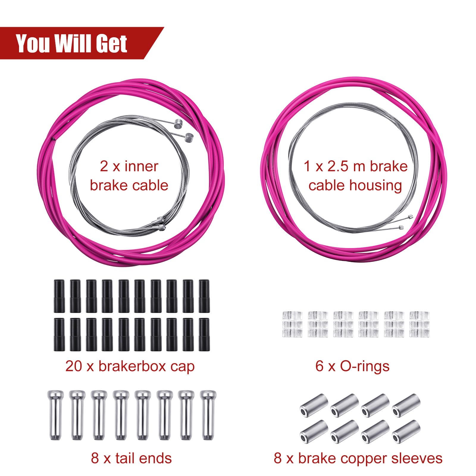 Ample quantity: you will receive 1 piece 2 m transmission cable shell (4 mm), 2 pieces inner variable speed cable, 1 piece 2.5 m brake wire outer tube (5 mm), 2 pieces inner brake cable, 6 pieces O rings, 8 pieces tail ends, 8 pieces brake copper sleeves, 20 pieces cable ferrules, large amount of quantity