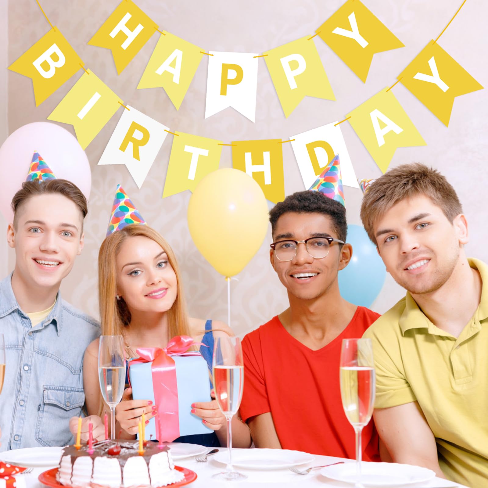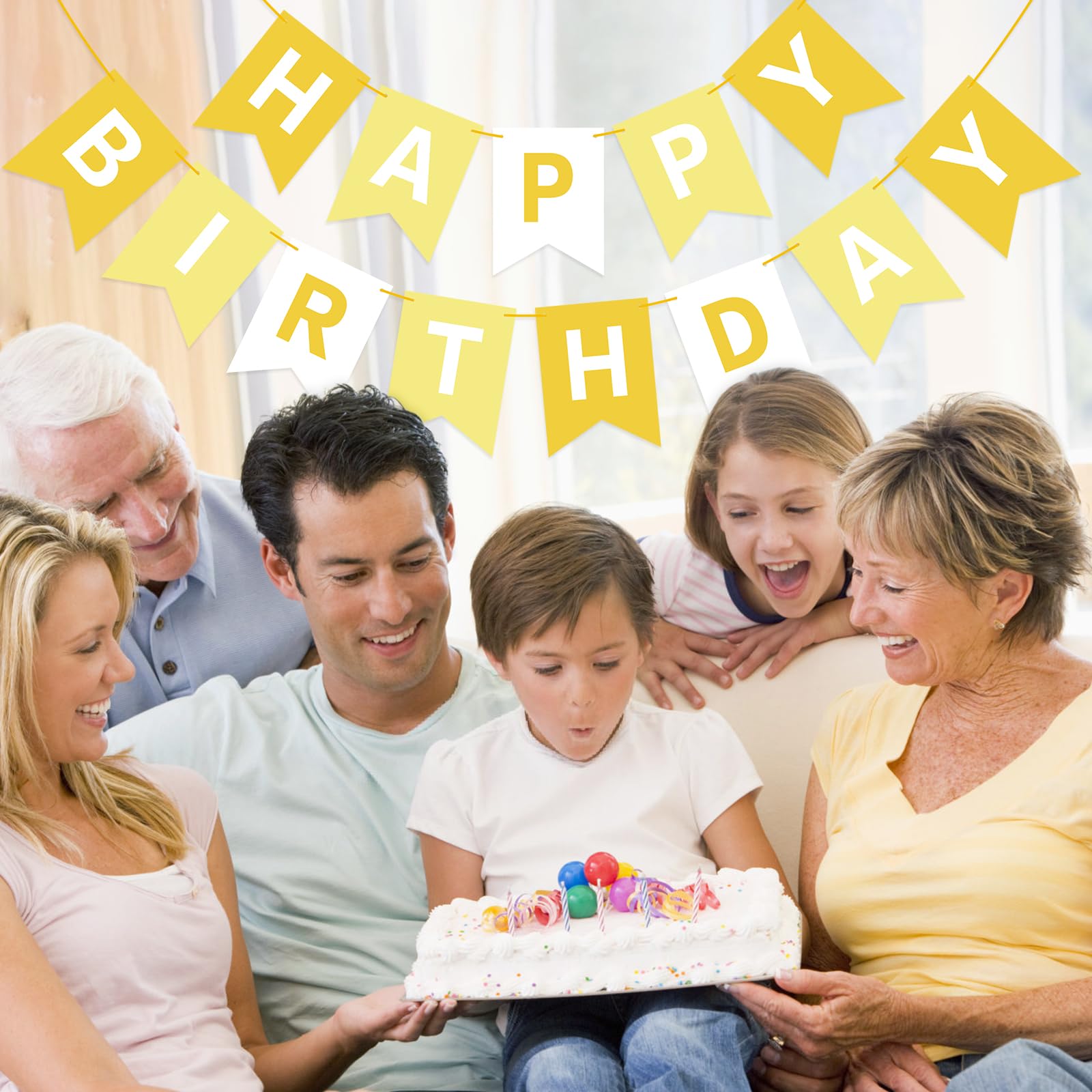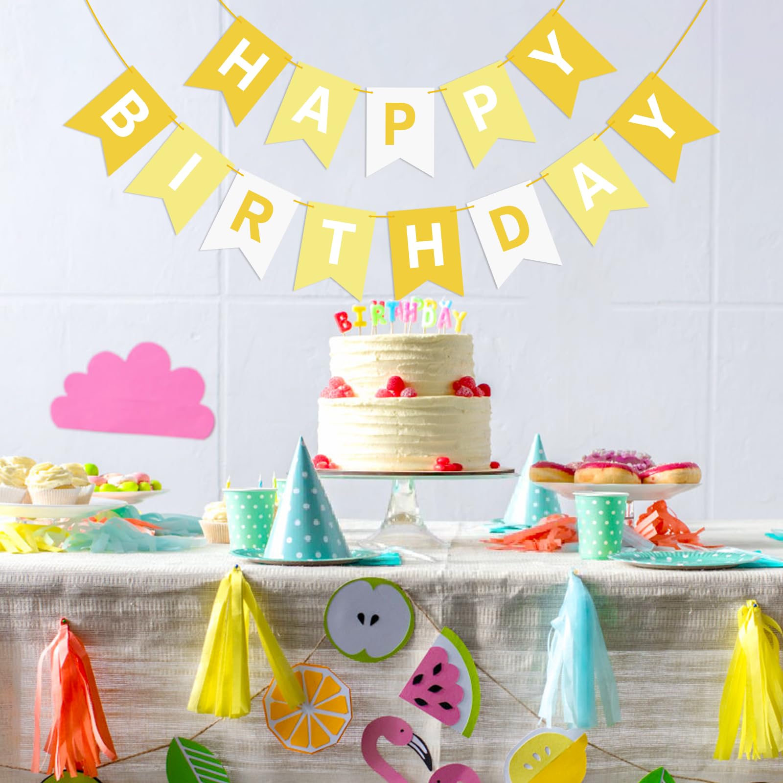 HIGH QUALITY: Made of high-quality ECO-Friendly paper, resistant and reusable. Beautiful and lively colors add luster to the space decoration. Happy birthday banner yellow easily fit any wall, fireplace, gift table, buffet table, garden, living room, family room, banquet hall, indoor or outdoor.