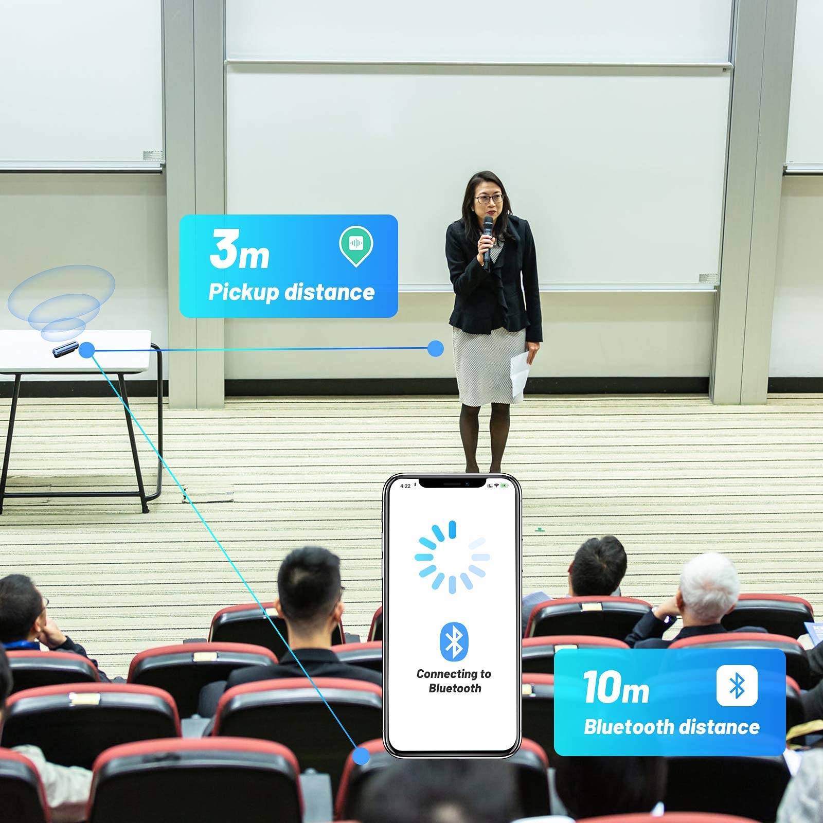 【3m Pickup Distance & 10m Bluetooth Distance】 S01 has high-definition sound pickup dual microphone arrays and intelligent noise reduction technology, and its voice pickup distance can reach up to 3 meters, Bluetooth connection can reach up to more than 10 meters. Our world-leading technologies have made live transcribing and real-time translation flawless from long distance and in noisy environments.