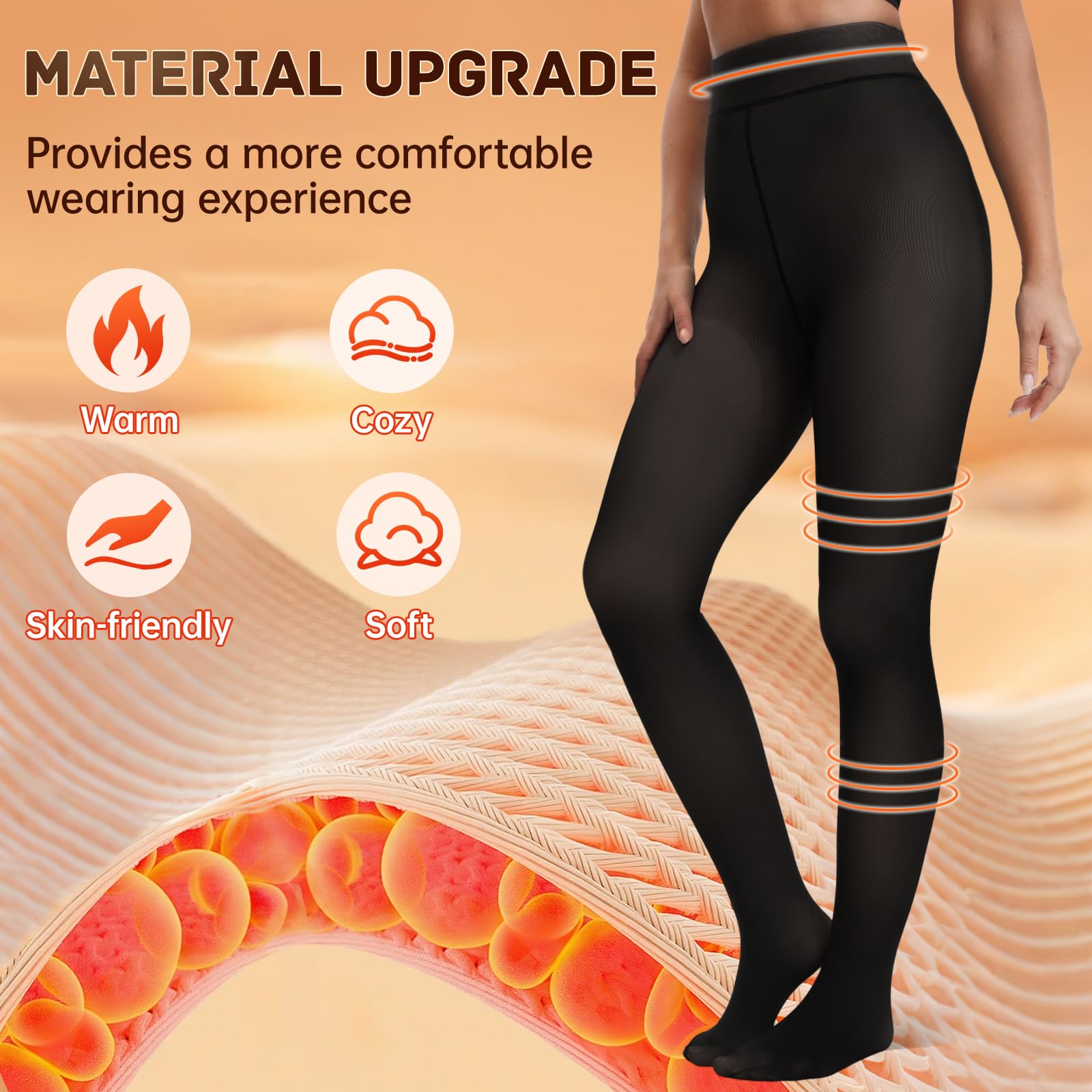【Fake Translucent pantyhose】The warm tights for women have a black transparent layer on the outer layer and a soft and skin friendly fleece lining on the inner layer, giving a illusive translucency. The fleece lined sheer tights can easily match with any winter clothes, shape the perfect body curve while keeping warm, and is a must-have item in women's wardrobes