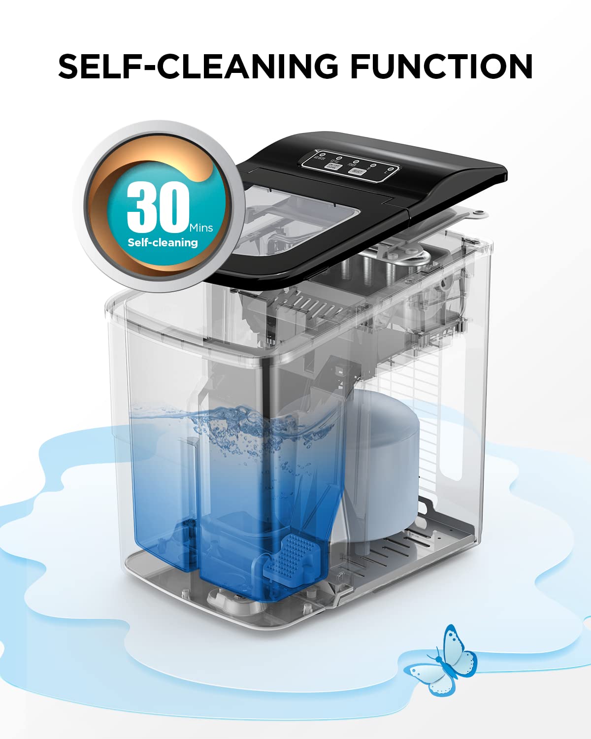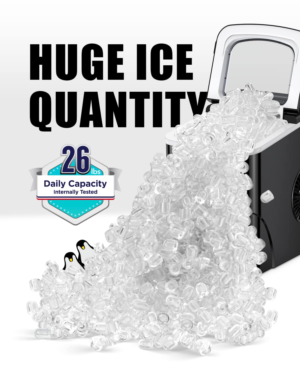 Ice Maker Machine for Countertop, 9 Bullet Ice Cubes Ready in 6 Minutes, 26lbs in 24Hrs Portable Ice Maker Machine Self-Cleaning, 2 Sizes of Bullet-Shaped Ice for Home Kitchen Office Bar Party