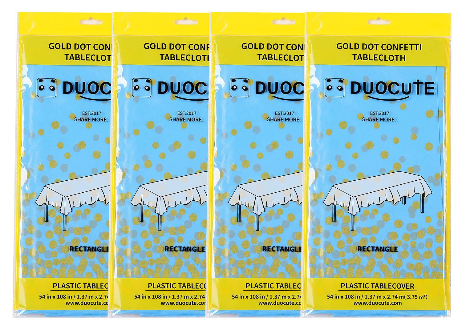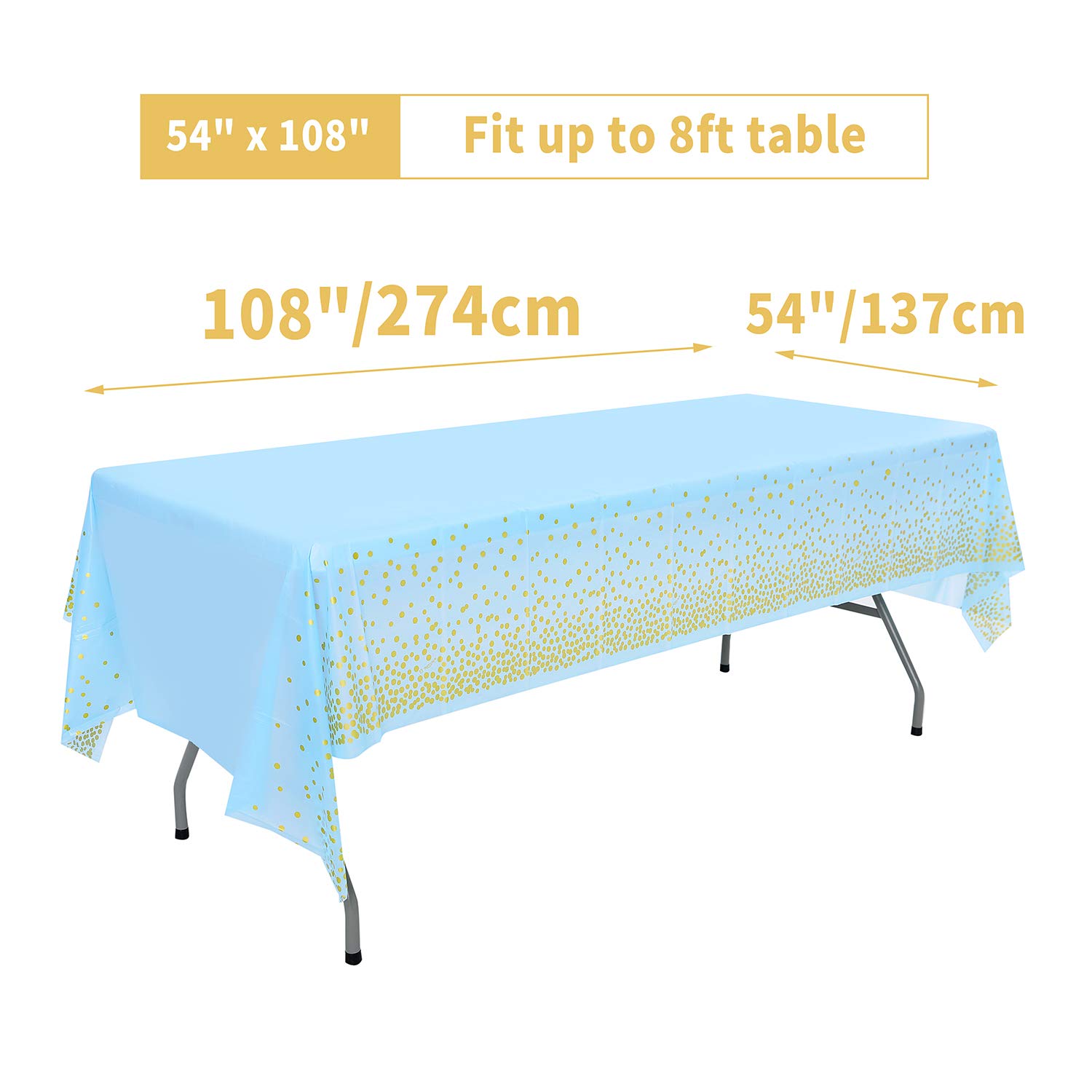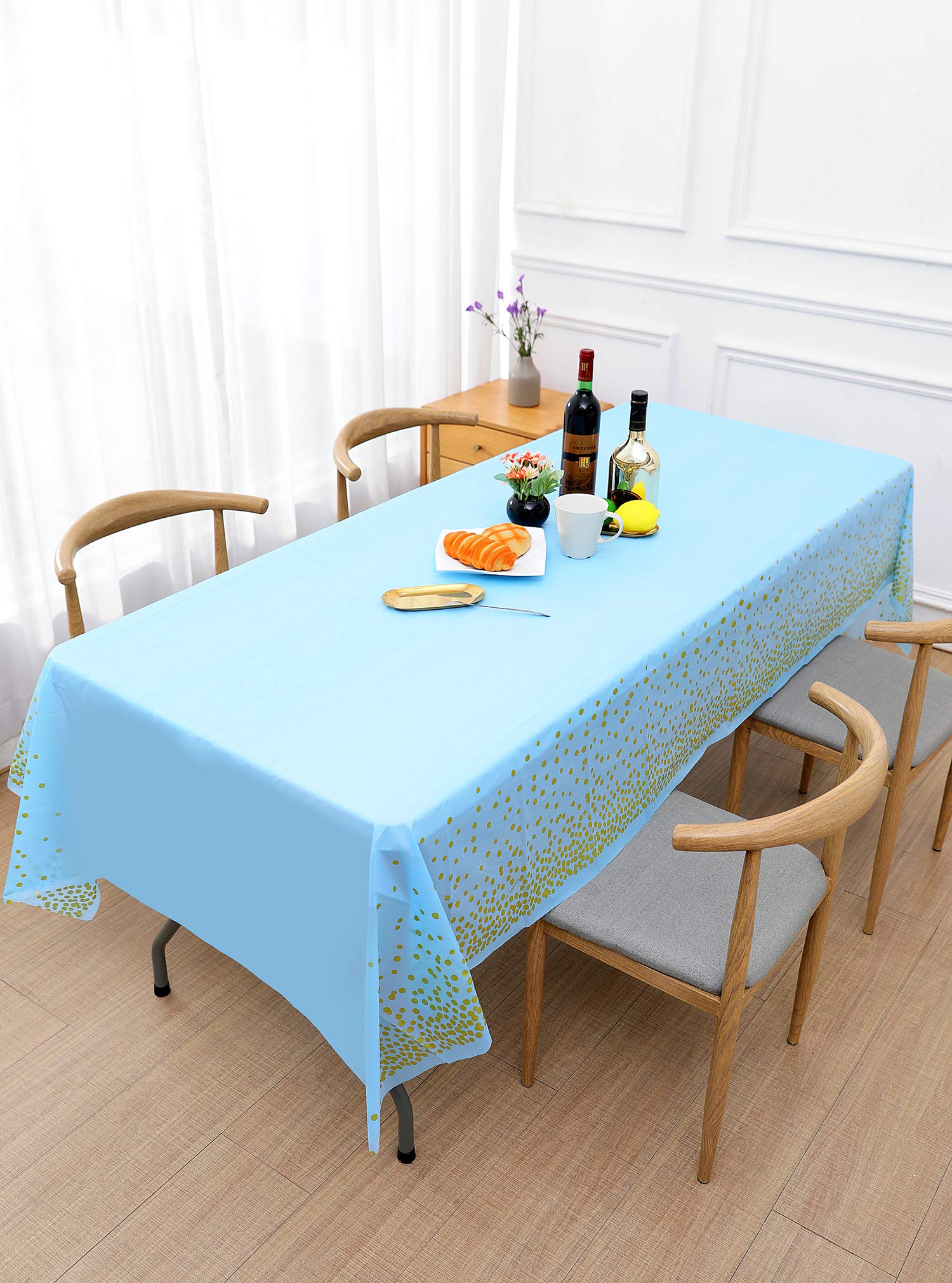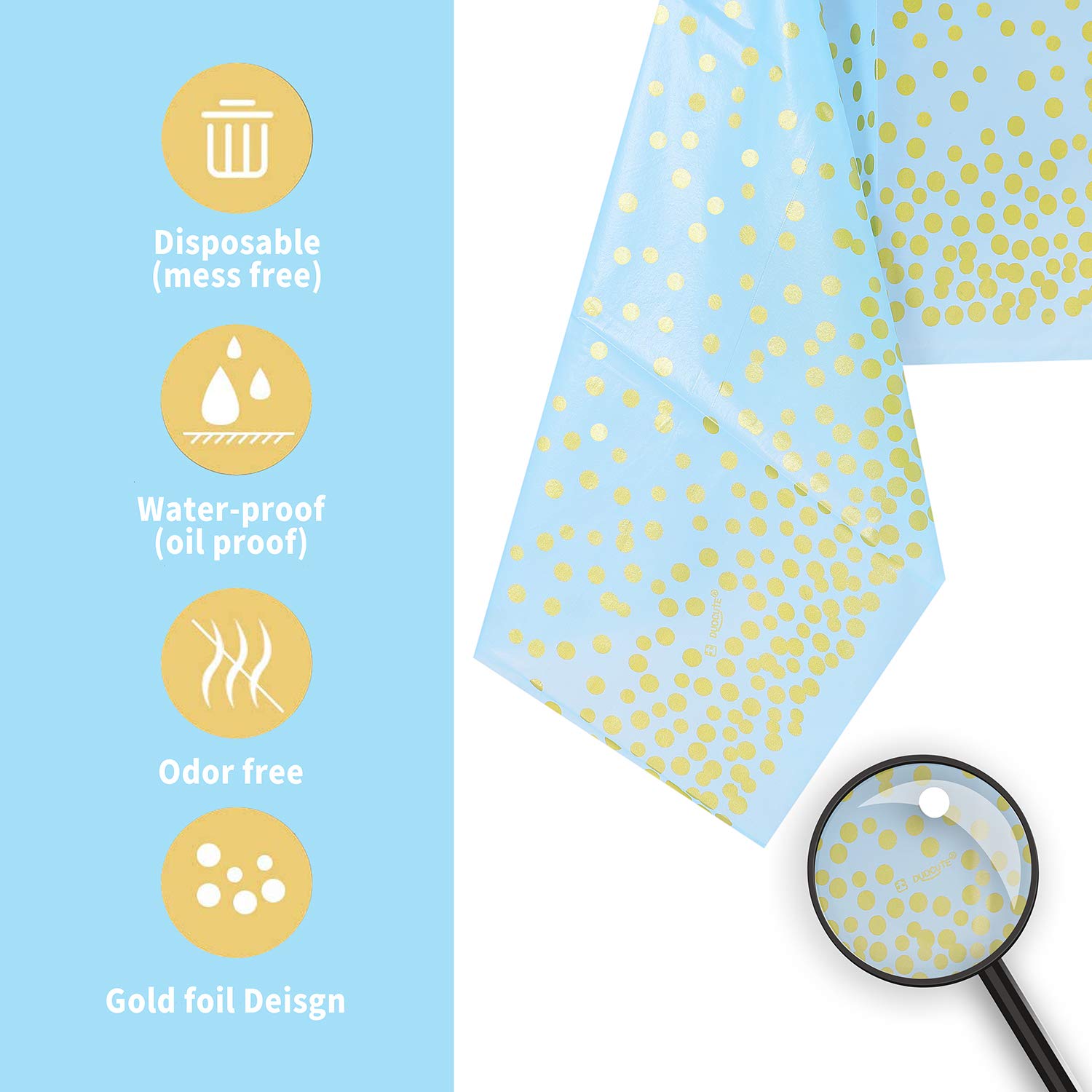 BLUE GOLD FOIL DOT DESIGN: This blue and gold dot tablecloth is designed to blue background and golden foil polka dot pattern. The tablecloth is all enhanced with attractive golden foil dot. Adding an elegant, modern touch to any party. Perfect choice for a blue and golden themed party.
