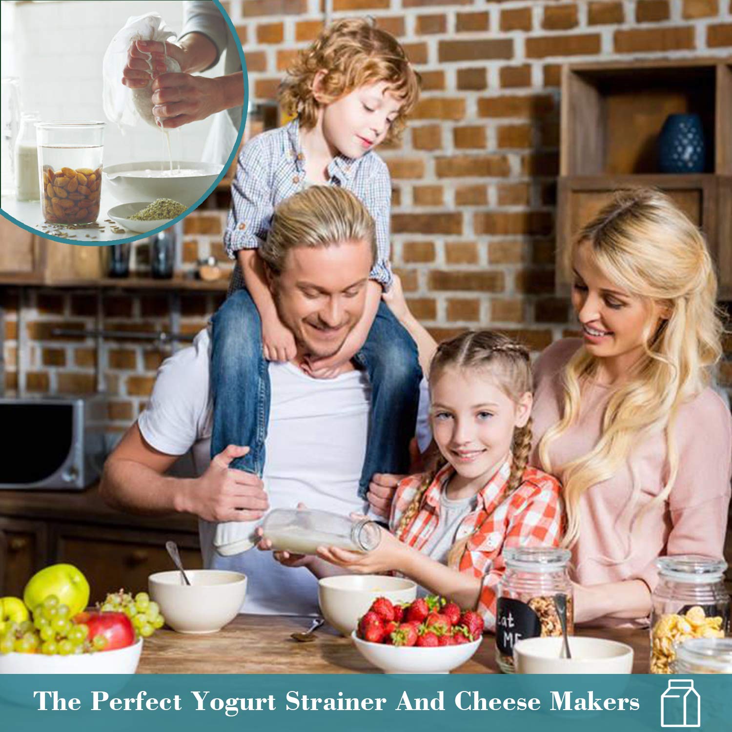 ⭐【Multiple Uses】This nut milk bag is a multi-function kitchen tool with dozens of uses. It can be used as all purpose strainer, a general filter for blender, homemade juicer/yogurt maker/cheese maker. It can be perfect used for making nutritious and yummy creamy nut/almond/coconut/cashew/unicorn/soy milk, fermented plant-based yogurt, Greek yogurt, nut cheese, broth/fruit/vegetable/celery juice, cold brew coffeedrinks, beer, ghee, kefir, tea, kombucha, chocolate creations, baby food etc.