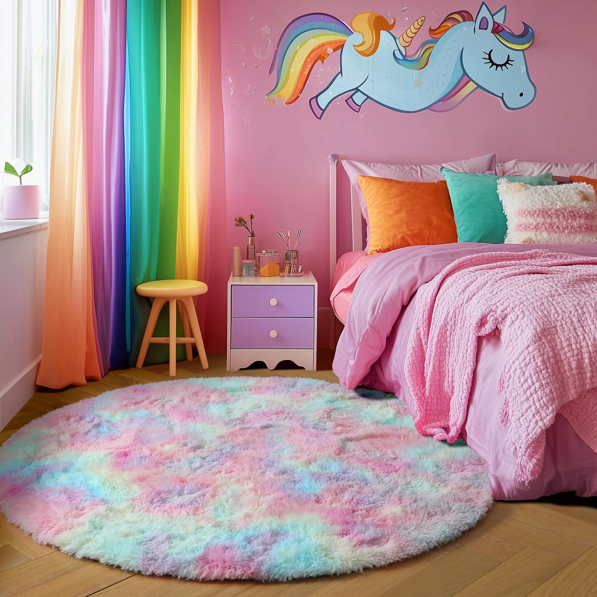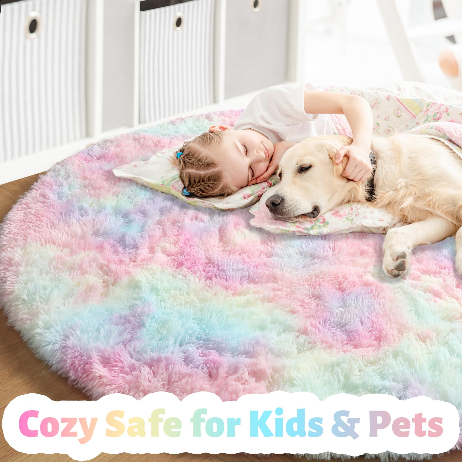 Perfect for Kid's Room: Do you have a little one fond of playing on the floor? If so, this is a 'must buy' for your kids. Its vivid color and furry appearance enhance a kid's room. The plush rug also offers warmth and comfort during their happy time. A cozy zone for kids and pets