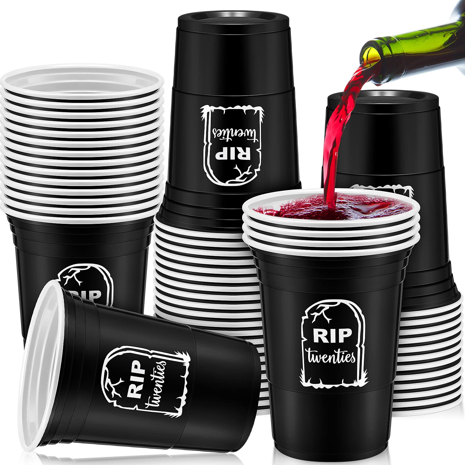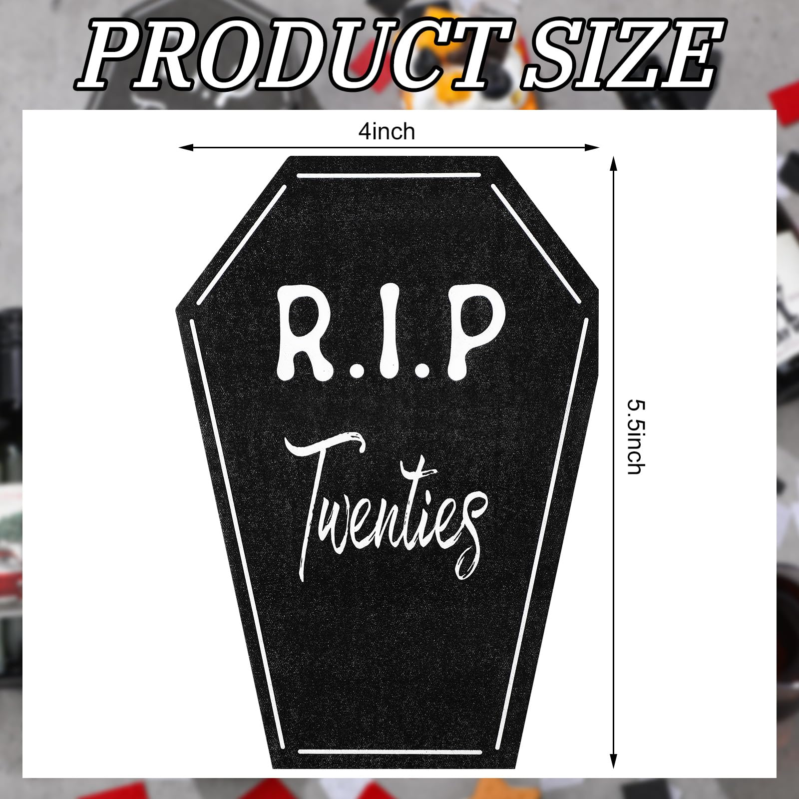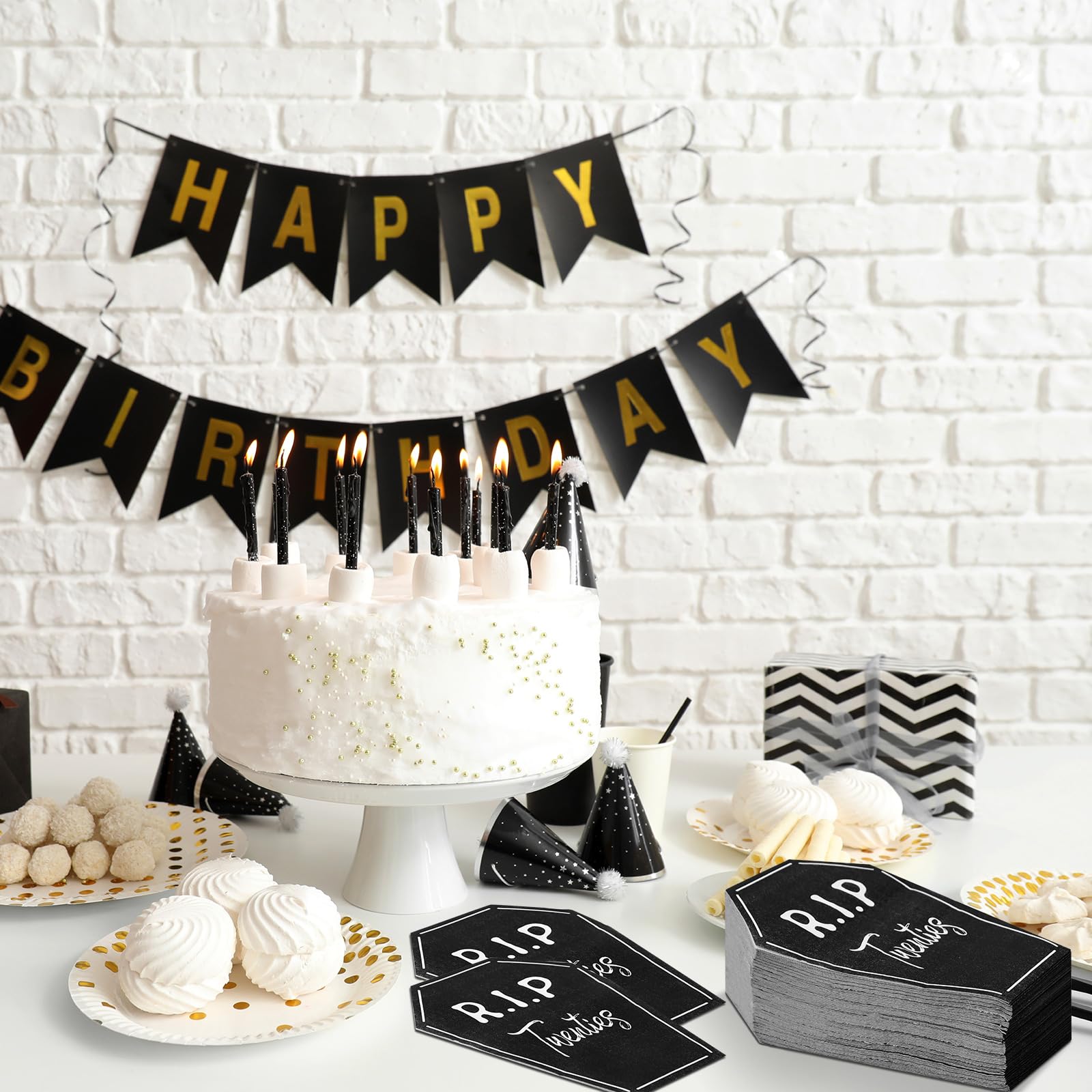 Dark Elegance: black and white cocktail napkins for rip to my 20s birthday decorations are eye catching and cool, enhancing the party ambiance; Printed with [R. I. P Twenties] and designed in tombstones shape, they not only keep the table clean, but also blend ideally with the other decorations