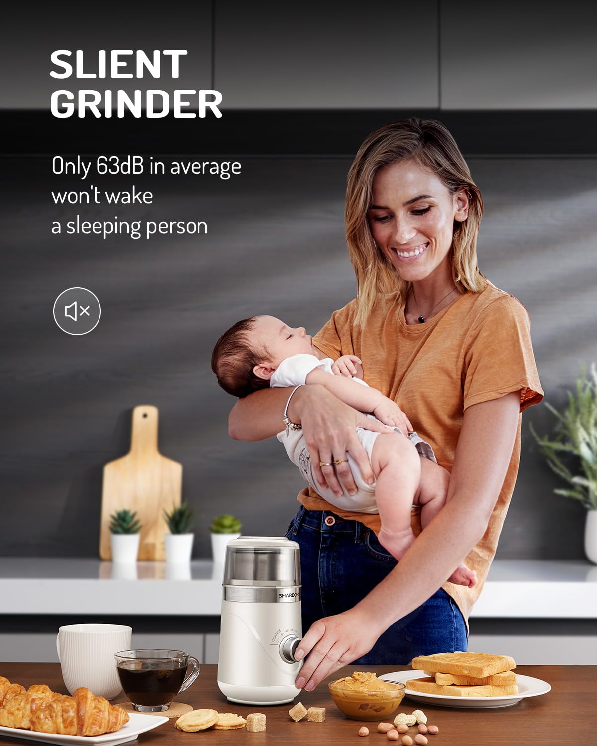 【Quiet Coffee Grinder】The average noise is 63 dB, which is quieter than other coffee grinders. Getting up early and grinding coffee beans without disturbing your families sleep in the morning.