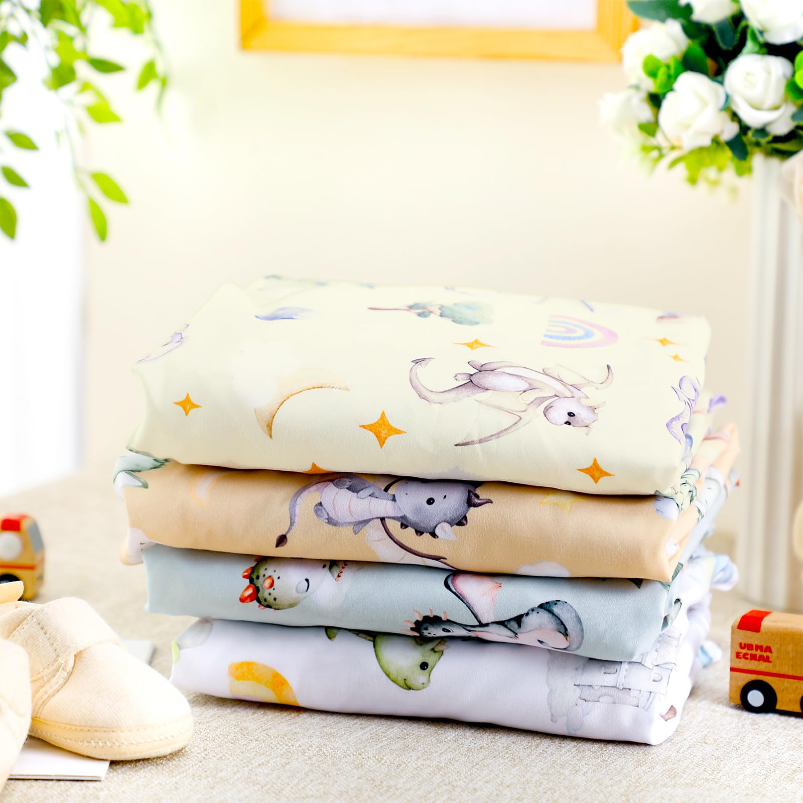 Unique Indoor Dragon Nursery Decor: as well as being practical, our dragon crib sheets are a unique fairy tale decoration; The striking watercolor inspired designs can transform your little one's crib into an adorable focal point, creating an interesting, festive themed environment
