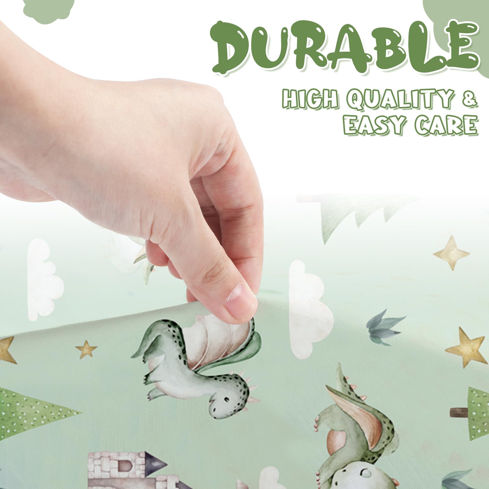 Dragon Theme Design: our dragon baby sheets for crib aren't just convenient; They are a visual delight, featuring 3D printing technology and classic fairy tale elements, such as cloud, moon, star, witch, dragons egg, dragons, and more; They feature reactive dyeing process, with clear patterns, and the colors will not fade after washing; They are easy to match with your cute mattress, blanket, shower curtain, wreath, table runner, and more
