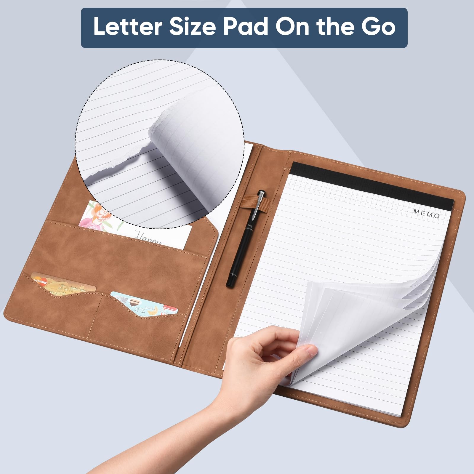 Travel friendly: This padfolio binder is lightweight and compact and it is easily fits into briefcares and bags. Making it the perfect accesorry for on the go professionals.