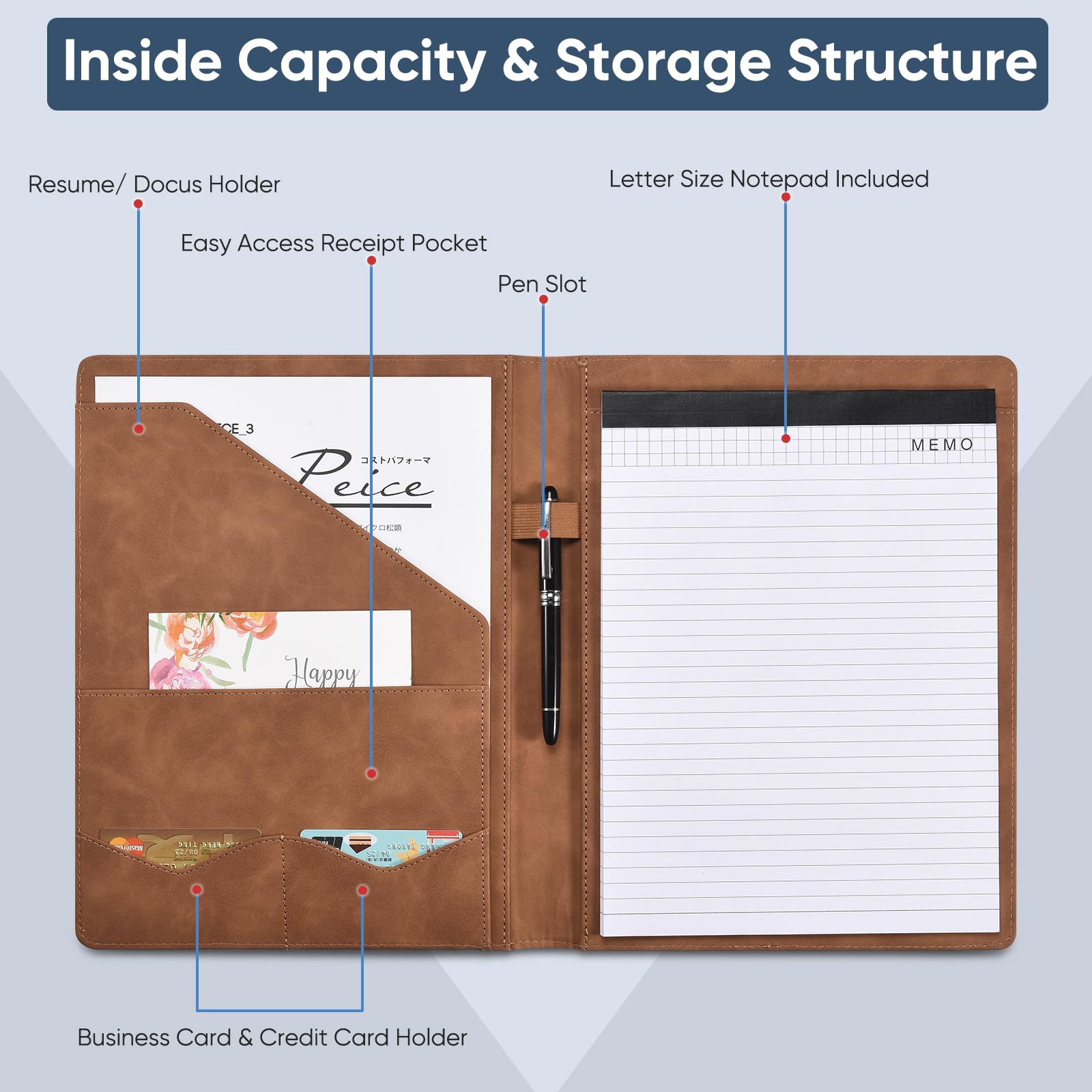 Versatile organize: Looking for a portfolio that would fit everything on the go? A business card, a flyers, a pen / pencil, an employee ID card, a passport, or a document pocket. Our portfolio has all the pockets you need no matter if you running errands, meetings.