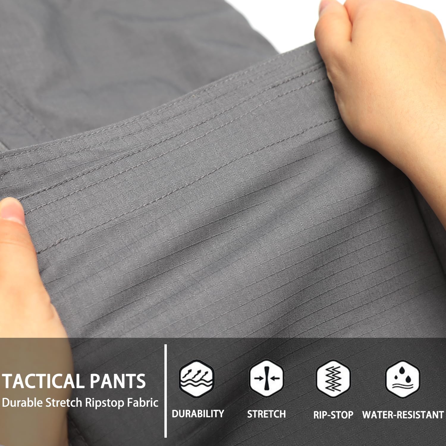 [Stretch Material]: Men's cargo tactical pants are made of polyester, cotton and spandex fabric that is rip-stop, scratch-resistant, water-resistant, dust-resistant, stain-resistant and stretchy for maximum mobility. (Note: Mid-high rise tactical pants do not include specialized tactical belt).
