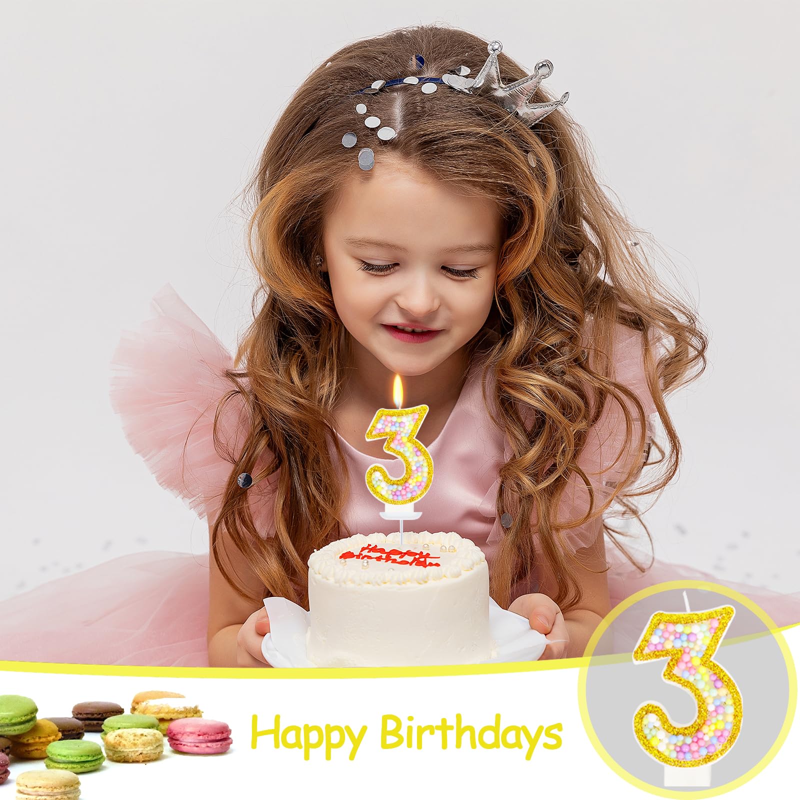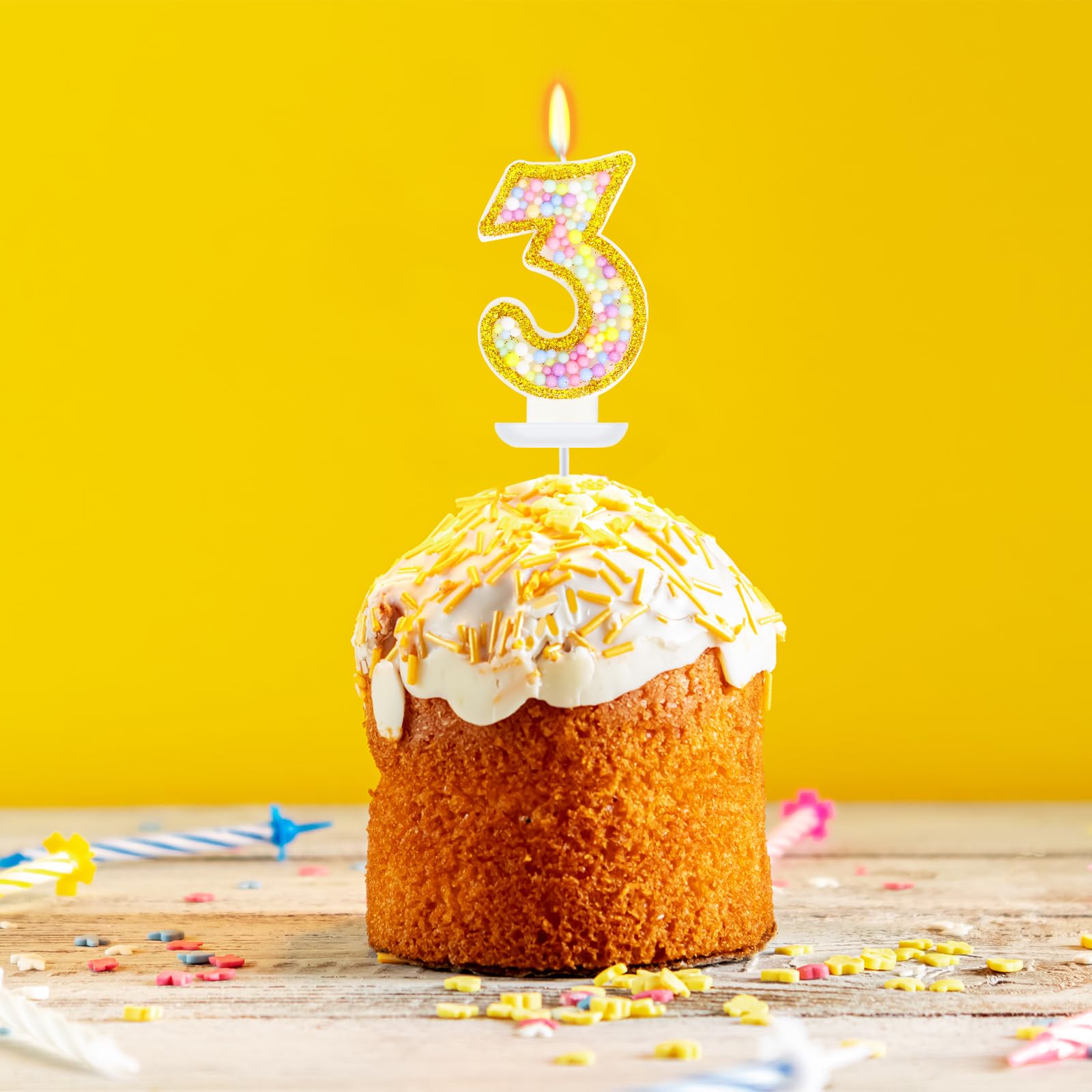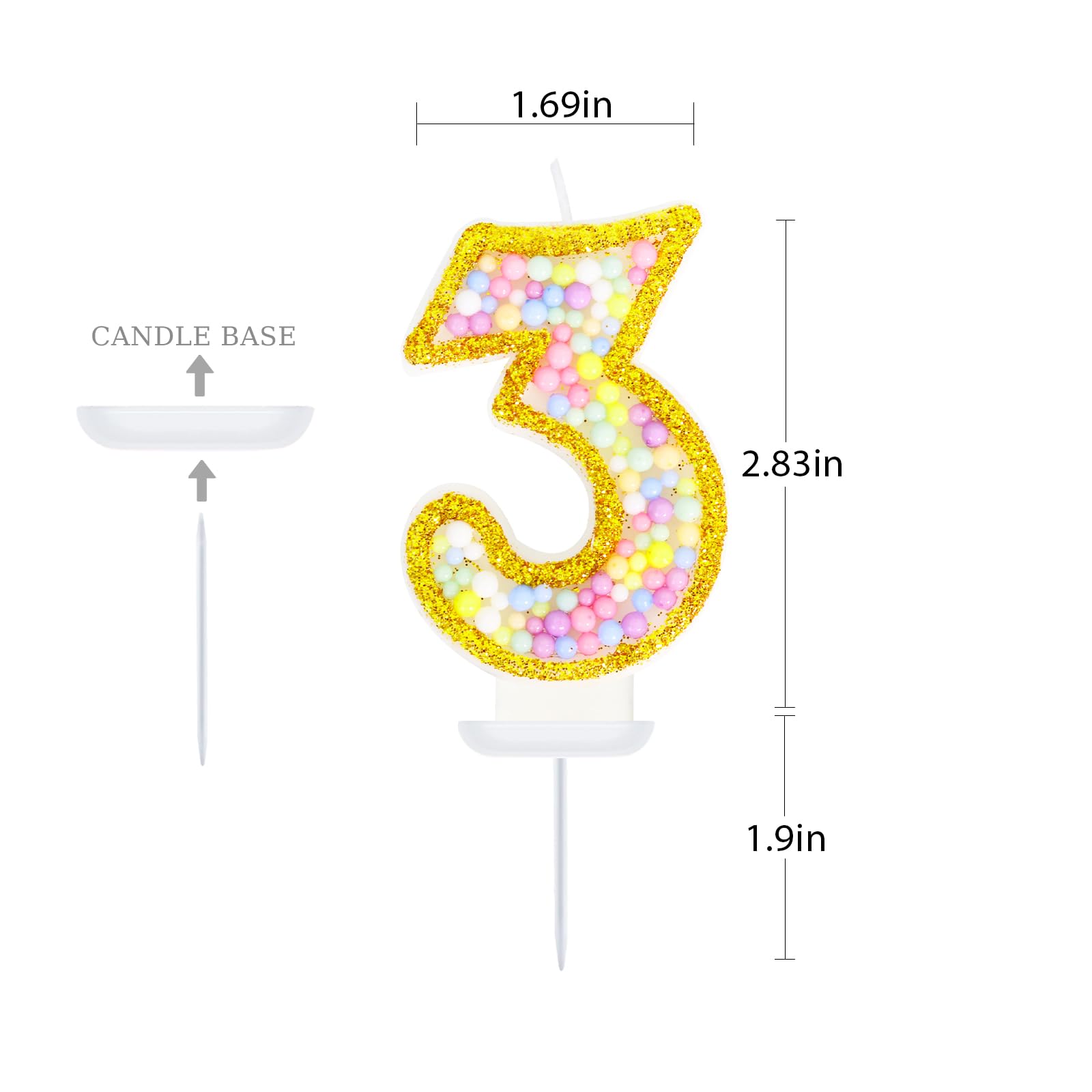 Pretty Design: This macaron number candle has been carefully designed by us, with glitter and multi-colored delicate pearls on the candle. It looks adorable and delightful - great decoration for birthday/party