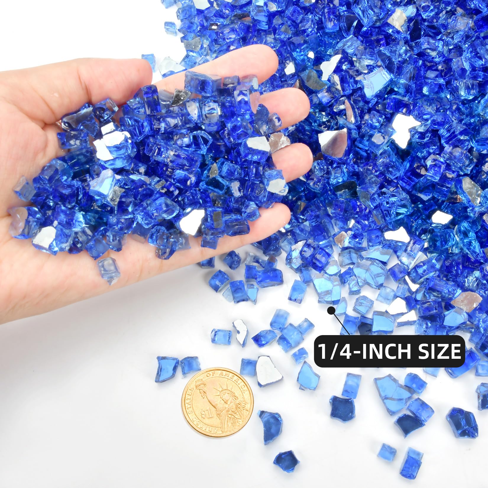 FIRE GLASS : adds a unique veneer of brilliance to any common fire pit. 10-Pound, 1/4 Inch Fire Glass Drops, Cobalt Blue Reflective