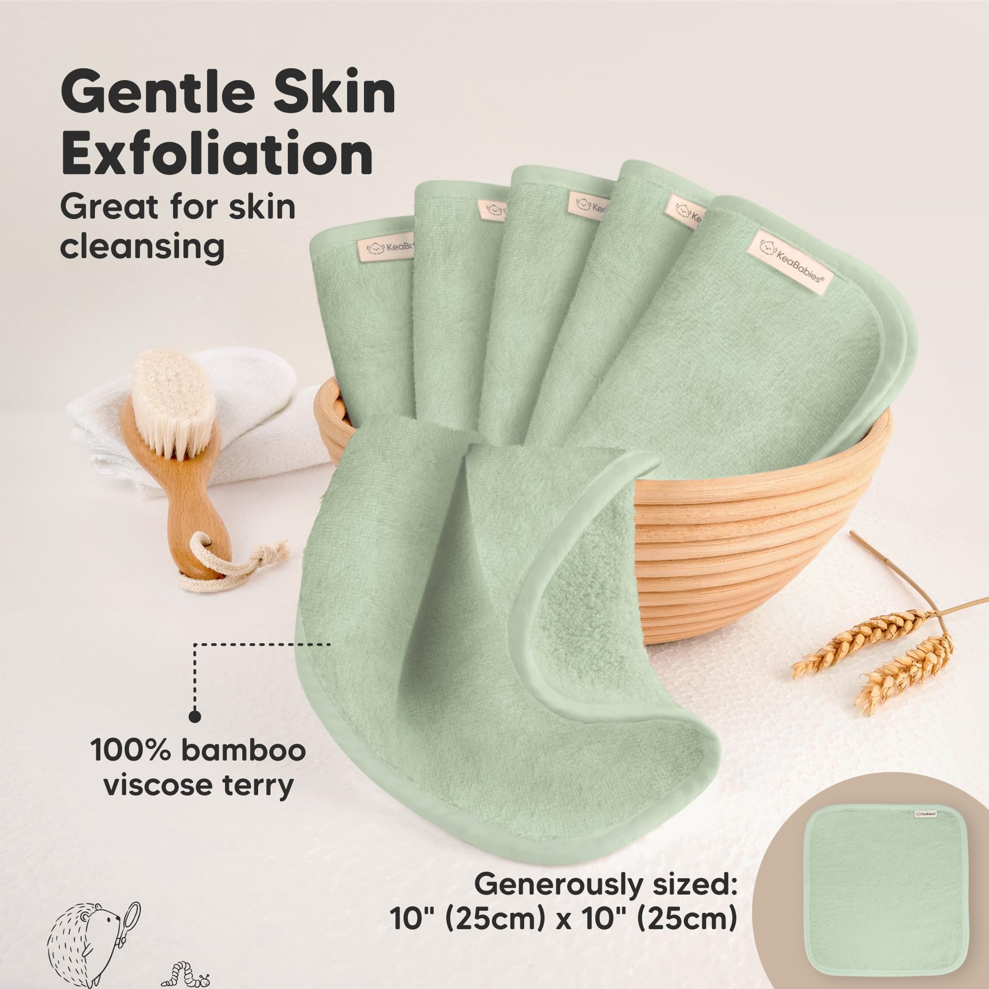 6-Pack KeaBabies Baby Wash Cloths - Sized at 10"x10" (25x25cm), these ultra-soft, 500GSM premium viscose derived from bamboo wash cloths for babies are perfect baby bath essentials.