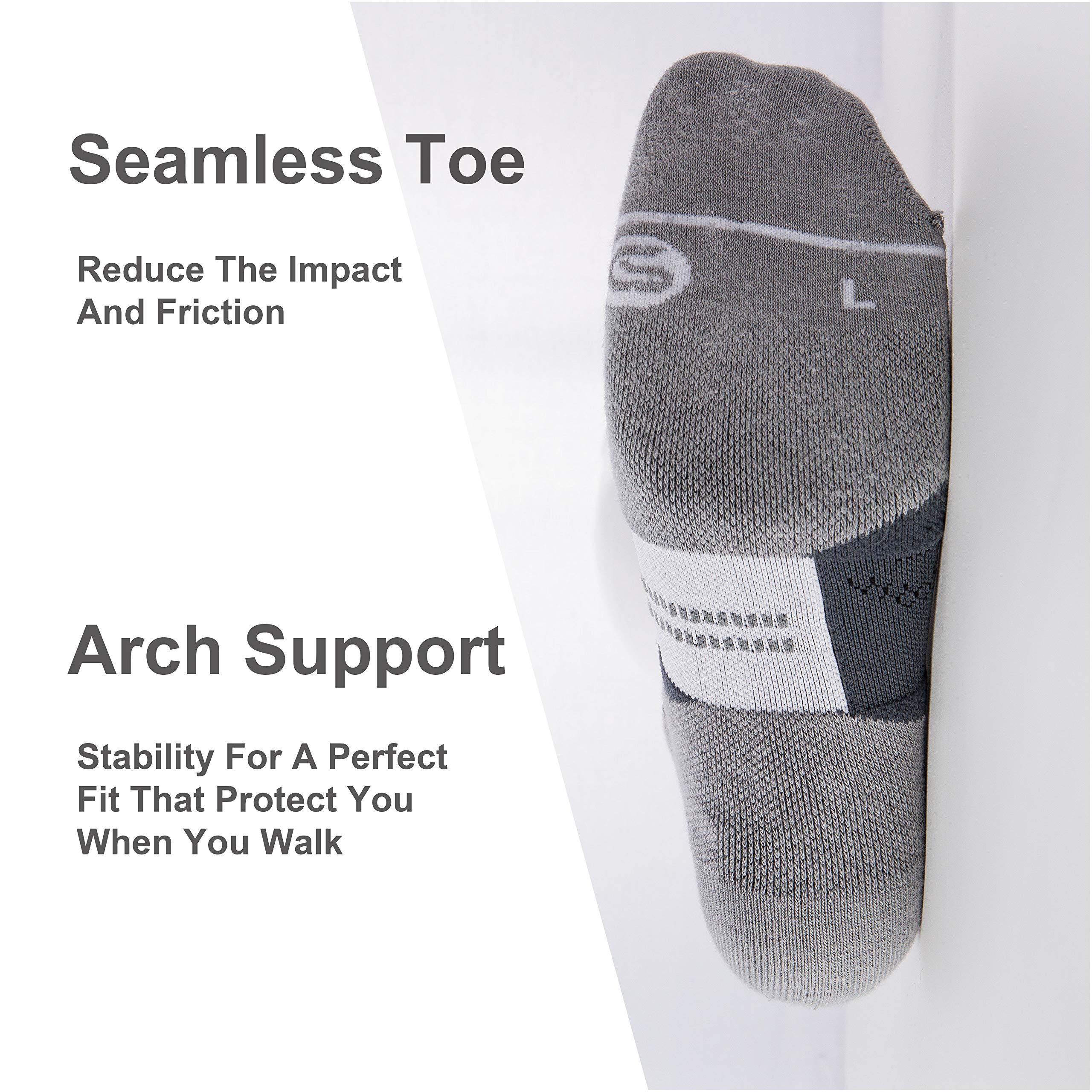 Non Slip Off: Our tab socks have suitable compression in arch to protect you when you walk, jog and run and increase stability for a perfect fit. Elastic cuff tab can lock the heel and make sure our sports socks non-slip in order to prevent athletic sock sliding from your daily walking, running, cycling, hiking, tennis.