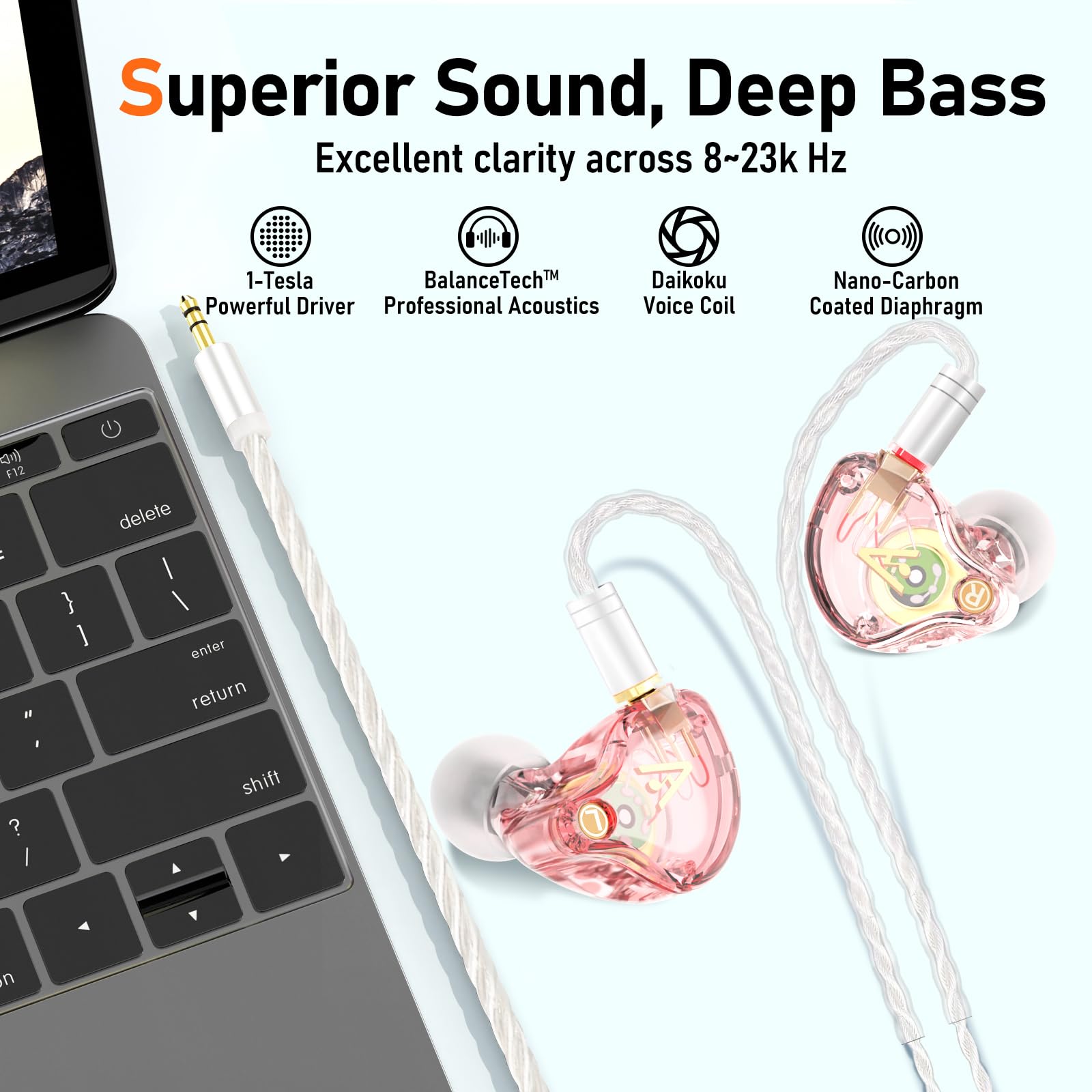 EXCEPTIONAL HIFI SOUND - Equipped with a 1-Tesla powerful driver and master-tuned professional acoustic chambers, the Vibes 202 HiFi in-ear monitor earphones deliver precise and detailed sound across a full frequency range from 8 to 23k Hz. The high-purity, silver-plated, Litz-braided audio cable ensures stable and lossless sound transmission for pure, unaltered audio.