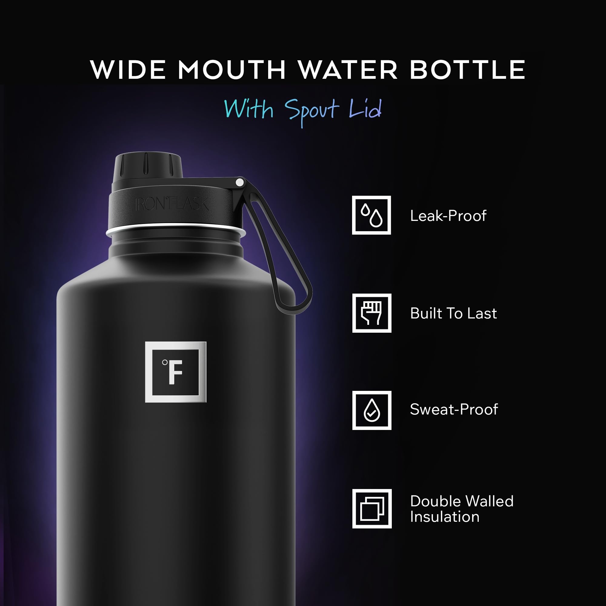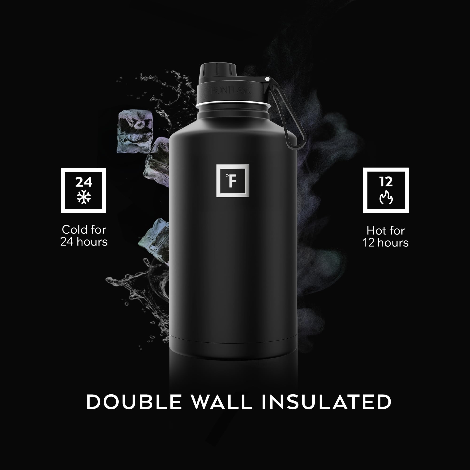INSULATED SPORTS WATER BOTTLE: Goodbye sweat! The double wall insulation makes the Iron Flask sweat-free! It keeps your drink COLD for up to 24 hours, and HOT for up to 12 hours. *NOTE: ONLY the 14 Oz, 18 Oz, & 22 Oz fit in cupholders*