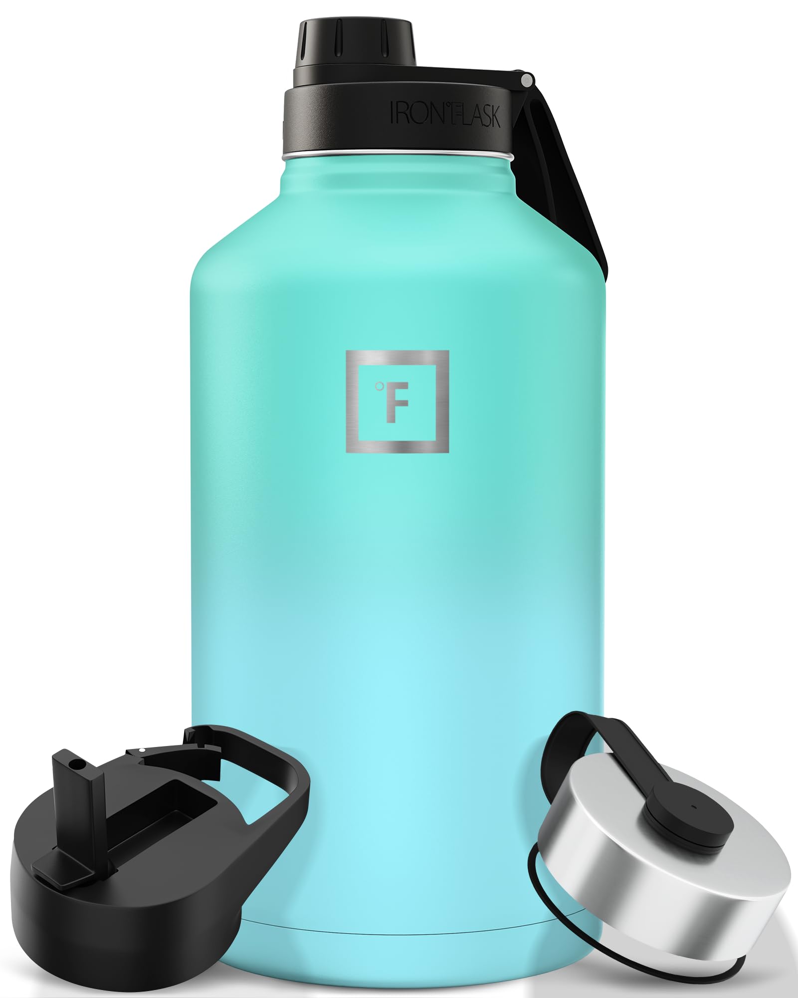 Your search for the best sports water bottle is over! Say hello to the best Sports Water Bottle out there, Iron Flask! Plastic water bottles? No thanks! The Iron Flask water bottle is made of premium 18/8 stainless steel that is BPA free. This bottle will keep your drinks cold & hot for many hours! It will also never sweat no matter what the drink temperature. Are you tired of low quality water bottles that sweat and leak? We all tried bottles that sweat and leak! Well, try the Iron Flask that comes with three, yes three different lids (Sports Straw Lid with two different straws, Flip Lid, and a Stainless Steel Lid) Looking for a water bottle to carry anywhere? This double wall insulated water bottle will meet all your needs! Whether you fill it with boiling water or a pack of ice, the bottle will never get hot or cold to carry! You can use at the office, the gym, or even for outdoor activities such as camping and hiking! Please note that only the 14 Oz, 18 Oz, & 22 Oz Iron Flask fits in cup holders.