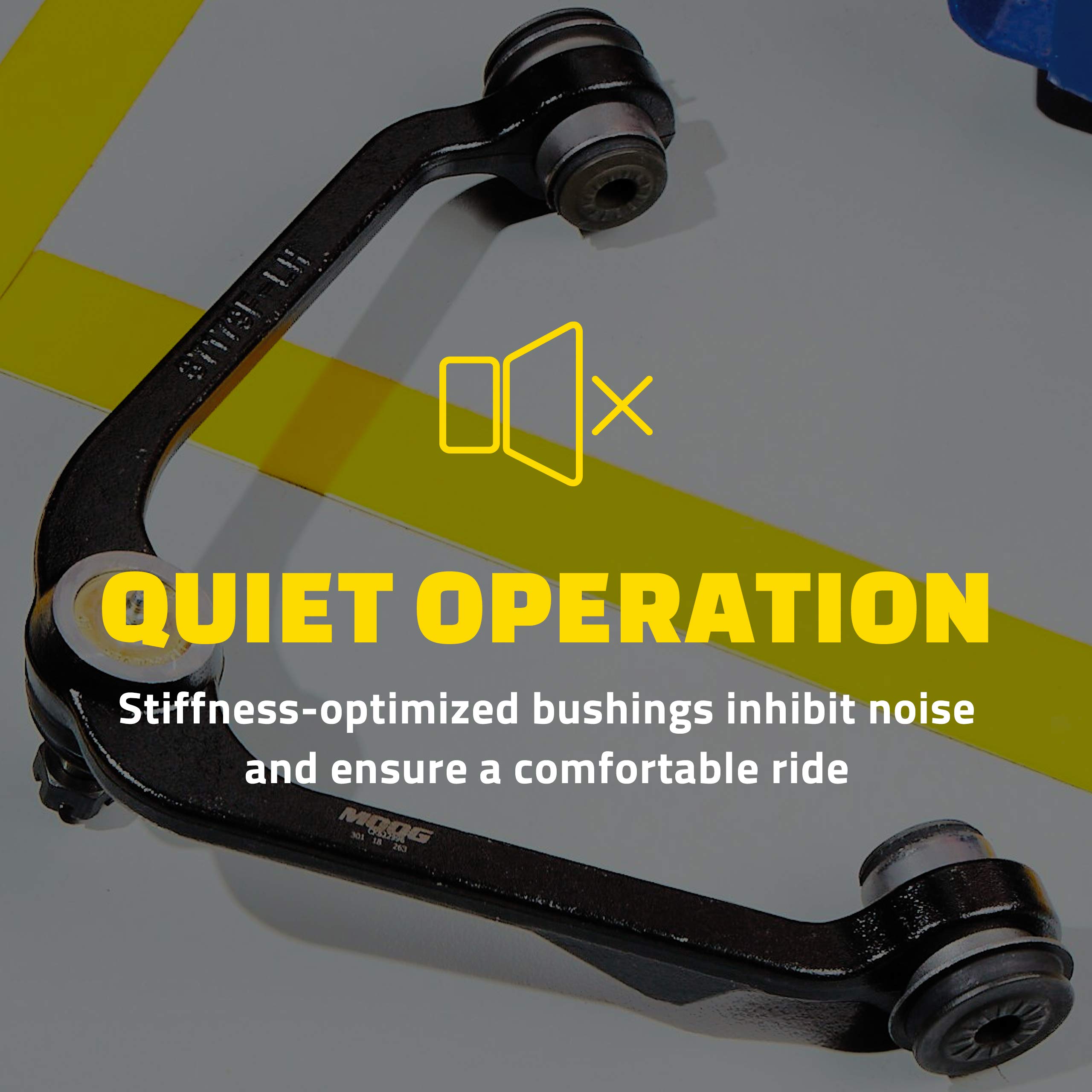 QUIET OPERATION -- Premium pre-installed bushings with optimized stiffness inhibit noise for a more comfortable ride