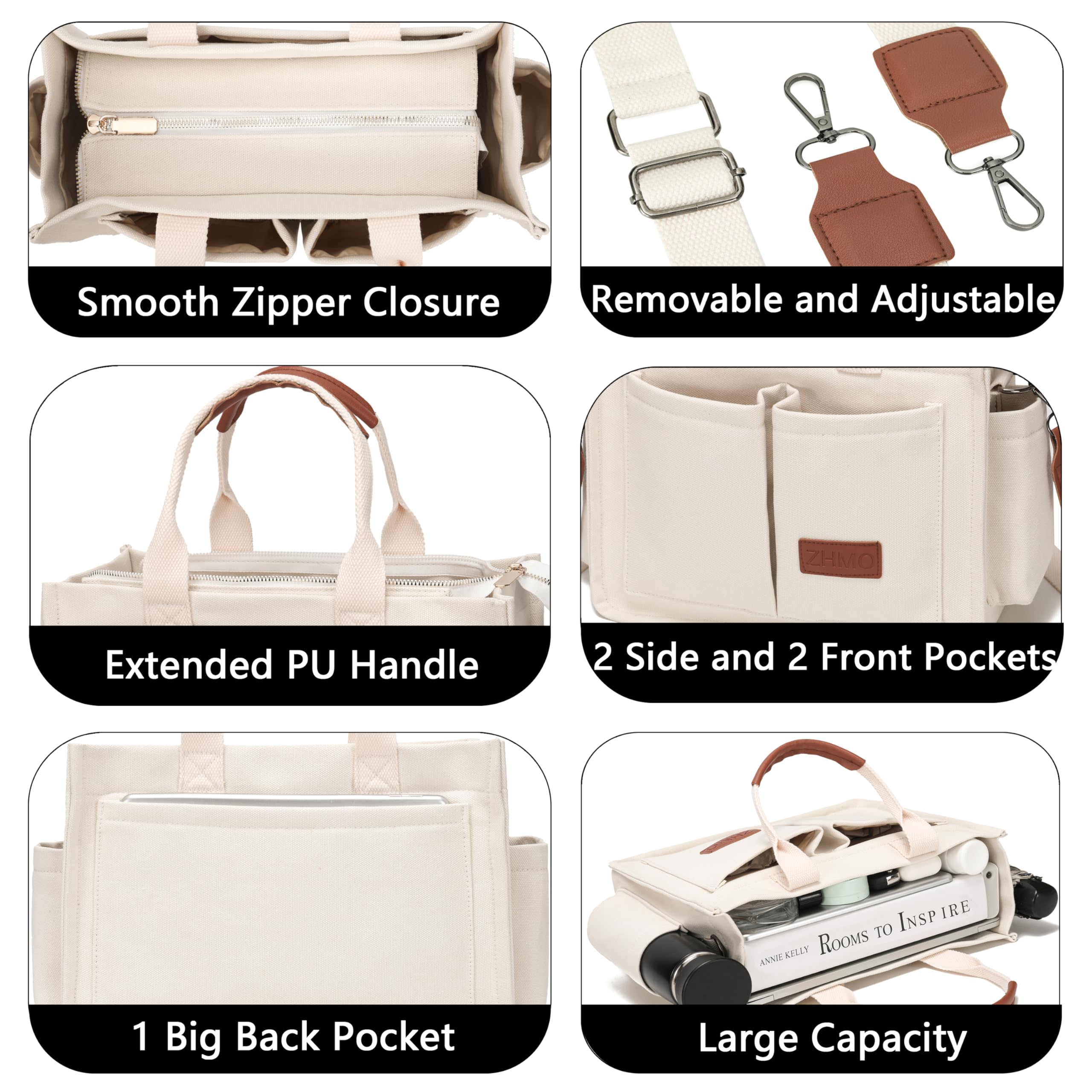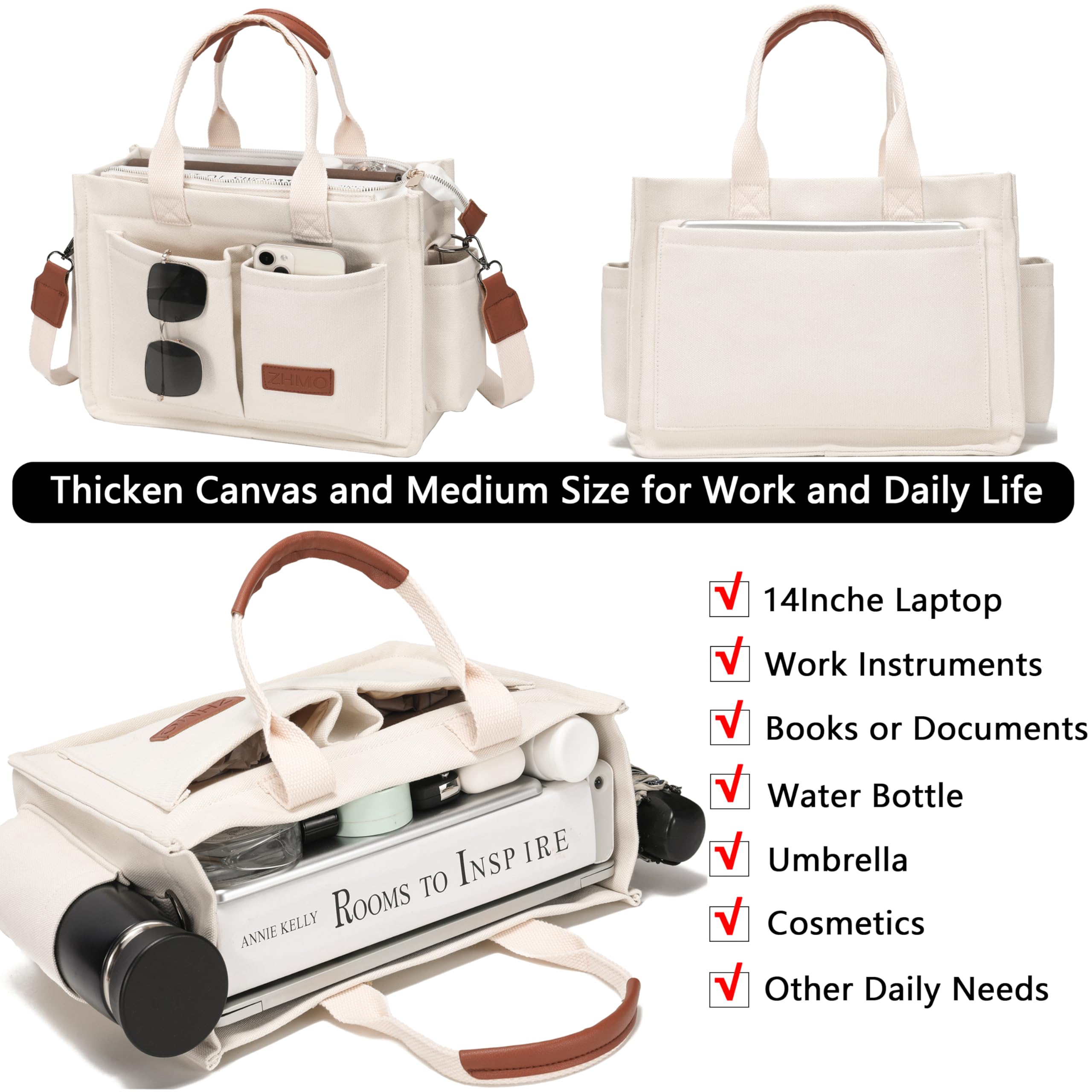 💗Durable and ultra well-made:Made of high-quality thickened canvas and lining polyester fabric that is rugged,water-resistant,lightweight,and easy to clean.Perfect stitching help maintain its shape well even full loaded.Large capacity(14.3"Lx5.9"Wx10.5"H) hold all your essentials for work,daily use,student use,holiday and travel.