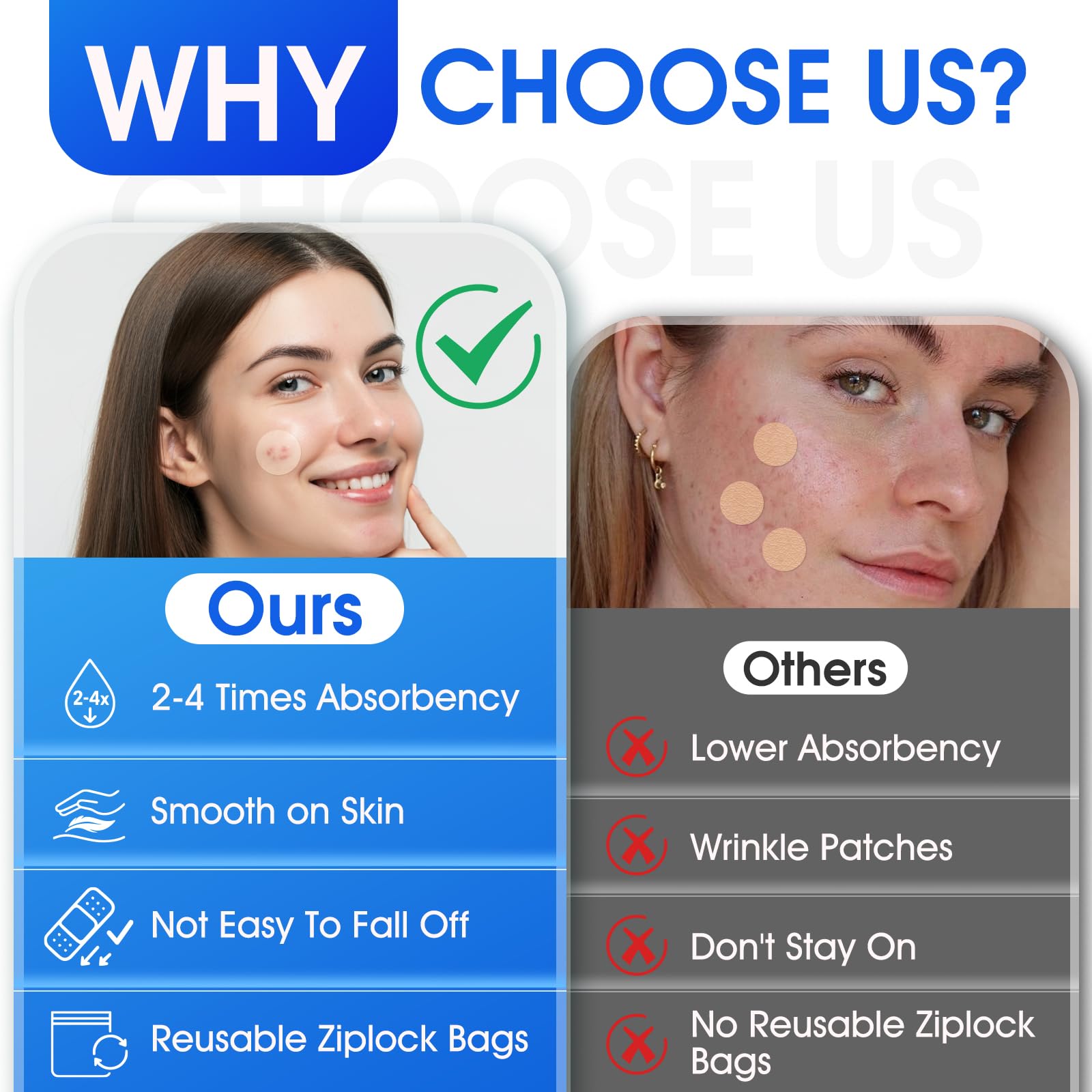 💨 Breathable Comfort, All-Day Wear: Unlike thick hydrocolloid dressings that trap heat and peel off, our ultra-thin 0.3mm hydrocolloid layers allow skin to breathe while staying firmly in place. Lab tests confirm a 65% reduction in moisture buildup, keeping skin calm, irritation-free, and so comfortable you’ll forget it’s even there—like a second skin.