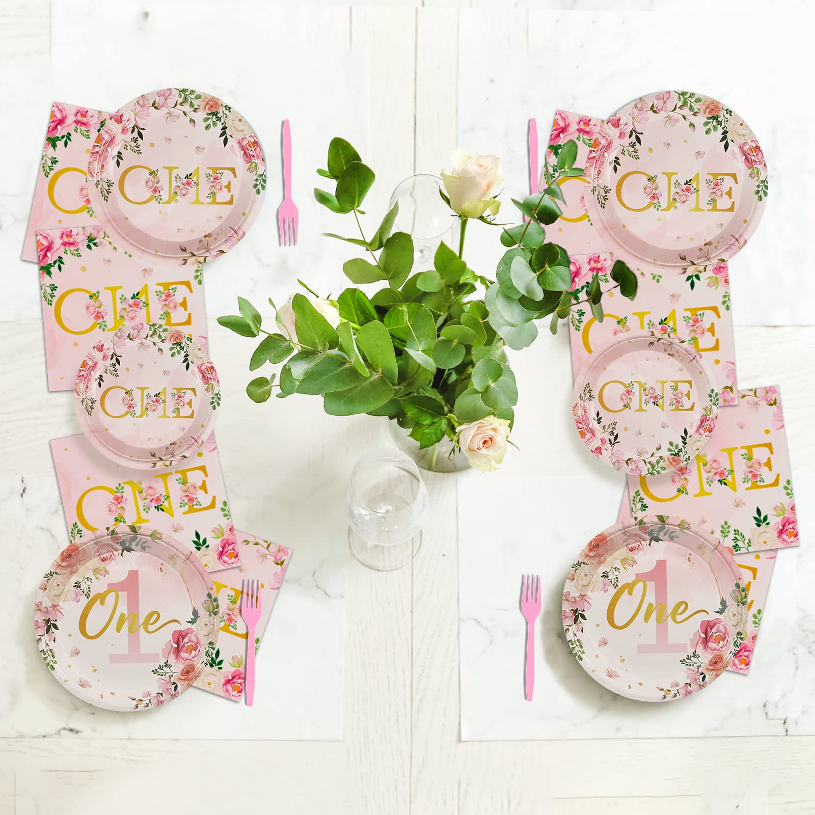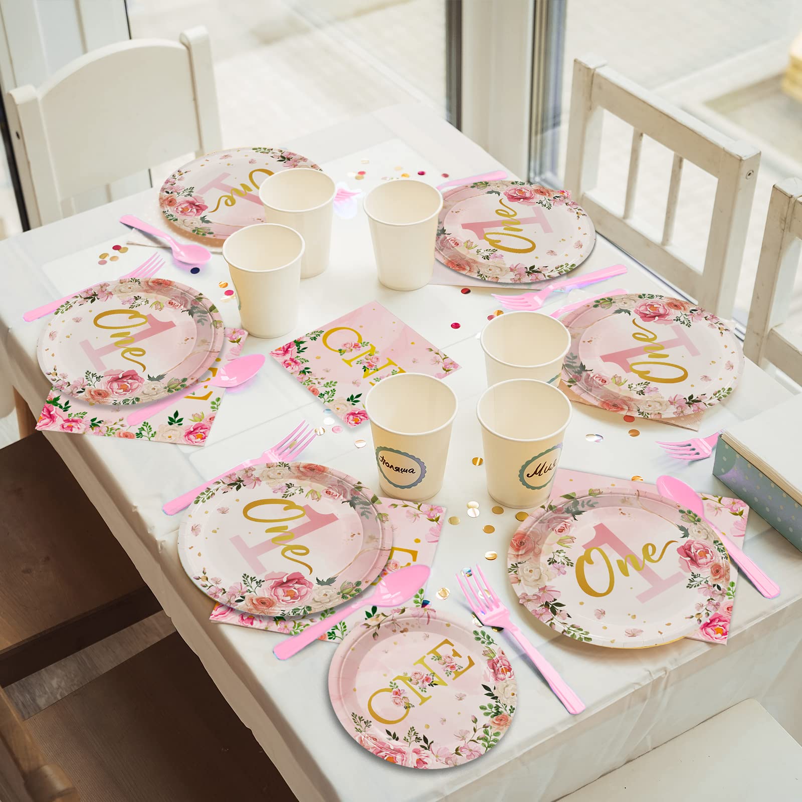Vibrant 1st birthday party design: Except for the fork, this 1st birthday theme party tableware set is all designed with cute pink flowers, easy to catch girl’s attention. Decorating your birthday party with these 1st birthday tableware kits can make your party full of a cheerful and exciting atmosphere.