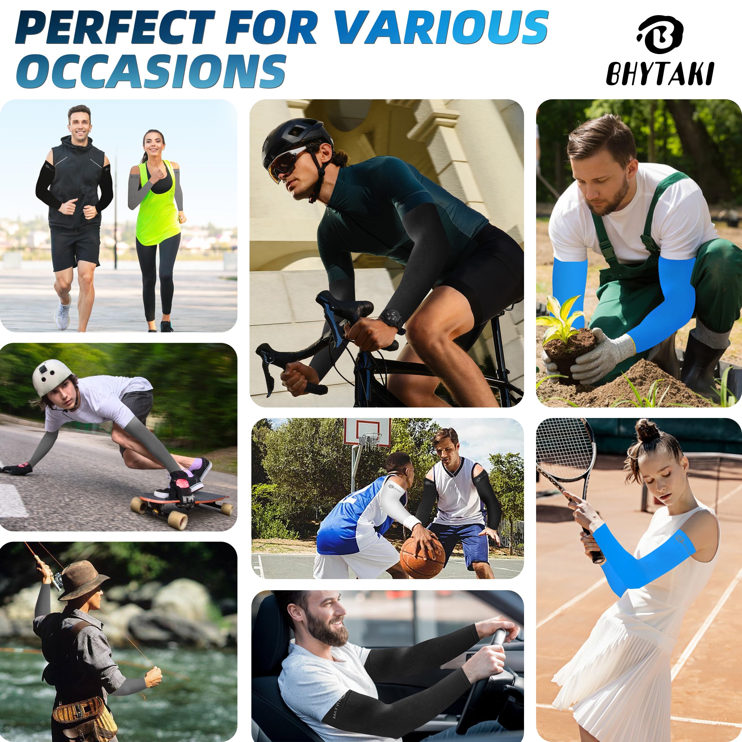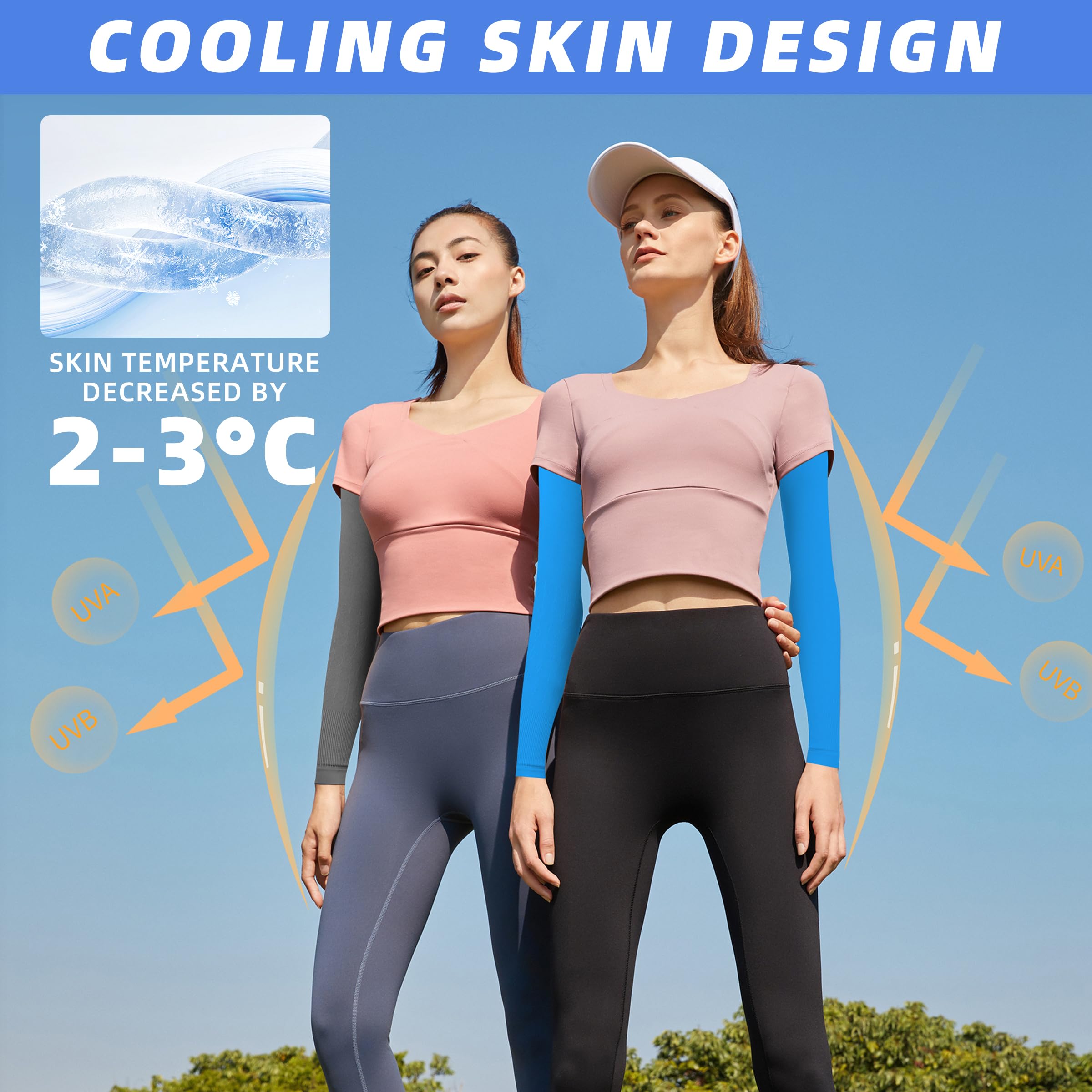 【Large Elastic Fit for Most】We broke the conventional cooling sleeves size and added elastic fibers, the length of the sun sleeves from 16.3 inches to 48 inches, and the width from 4 inches to 9.8 inches, can be stretched to the length you want, with high elasticity, it doesn't feel like it's strangling your arms when you wear it, and arm sleeves are more comfortable to wear. The arm sleeves circle of the upper arm has been designed to be widened to prevent slipping off during wearing.