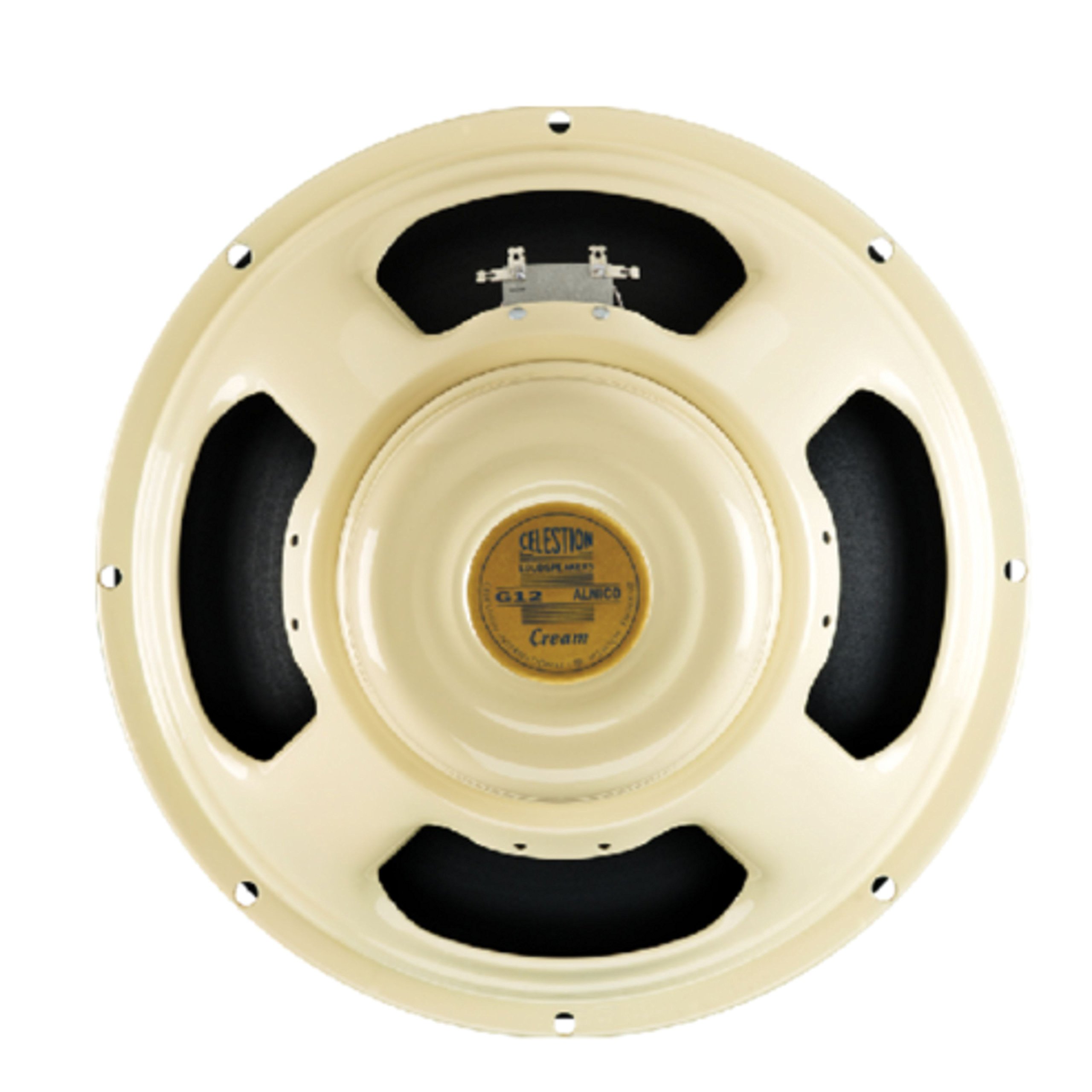 With a 90 watt power rating the Celestion Cream is purpose-built for vintage tones, whatever kind of amp you use. By applying new technologies and manufacturing methods developed during the creation of the Creamback speakers, Celestion's been able to deliver a higher power rating while preserving the very essence of an alnico guitar speaker. Delivering a glorious, laid-back attack, the Cream exudes warm lows and a brilliant bell-like chime. It has smooth and organic mids, further characterised by a fine-grained detail that adds a high-definition quality to the vocal range. The Cream has been specially created to bring alnico class to all kinds of amps from 1 watt to 90 watts. It conveys a satisfying warmth, detailed expressiveness and exceptional musicality, even at low power levels. || General Specifications : Nominal diameter : 12", 305mm || Power rating : 90W || Nominal impedance : 16Ω || Sensitivity : 100dB || Chassis type : Pressed steel || Voice coil diameter : 1.75", 44.5mm || Voice coil material : Round copper || Magnet type : Alnico || Frequency range : 75-5000Hz || Resonance frequency, Fs : 75Hz || DC resistance, Re : 13.1Ω || Mounting Information : Cut-out diameter : 11.1”, 283mm || Diameter : 12.2", 309mm || Magnet structure diamete : r5.0", 128mm || Mounting slot dimensions : 0.31", 7.9mm Ø || Mounting slot PCD : 11.7", 297mm || Number of mounting slots : 8 || Overall depth : 6.5”, 165mm || Unit weight : 9.3lb, 4.2kg