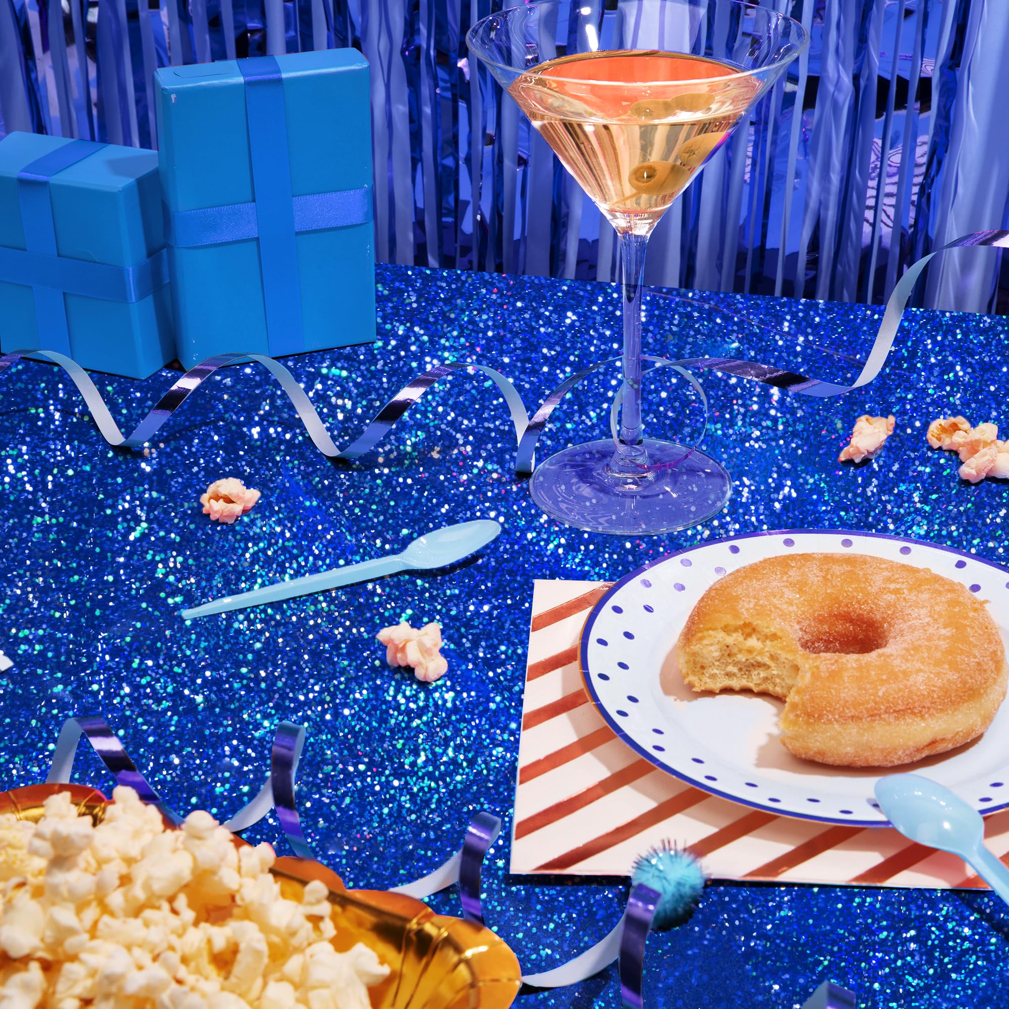 Sparkling Vibe: Transform your party tables with the Just Shimmer Laser Shine Tablecloth. Its unique laser Shine design creates a mesmerizing sparkle, resembling the enchanting Shines of the galaxy and ocean.