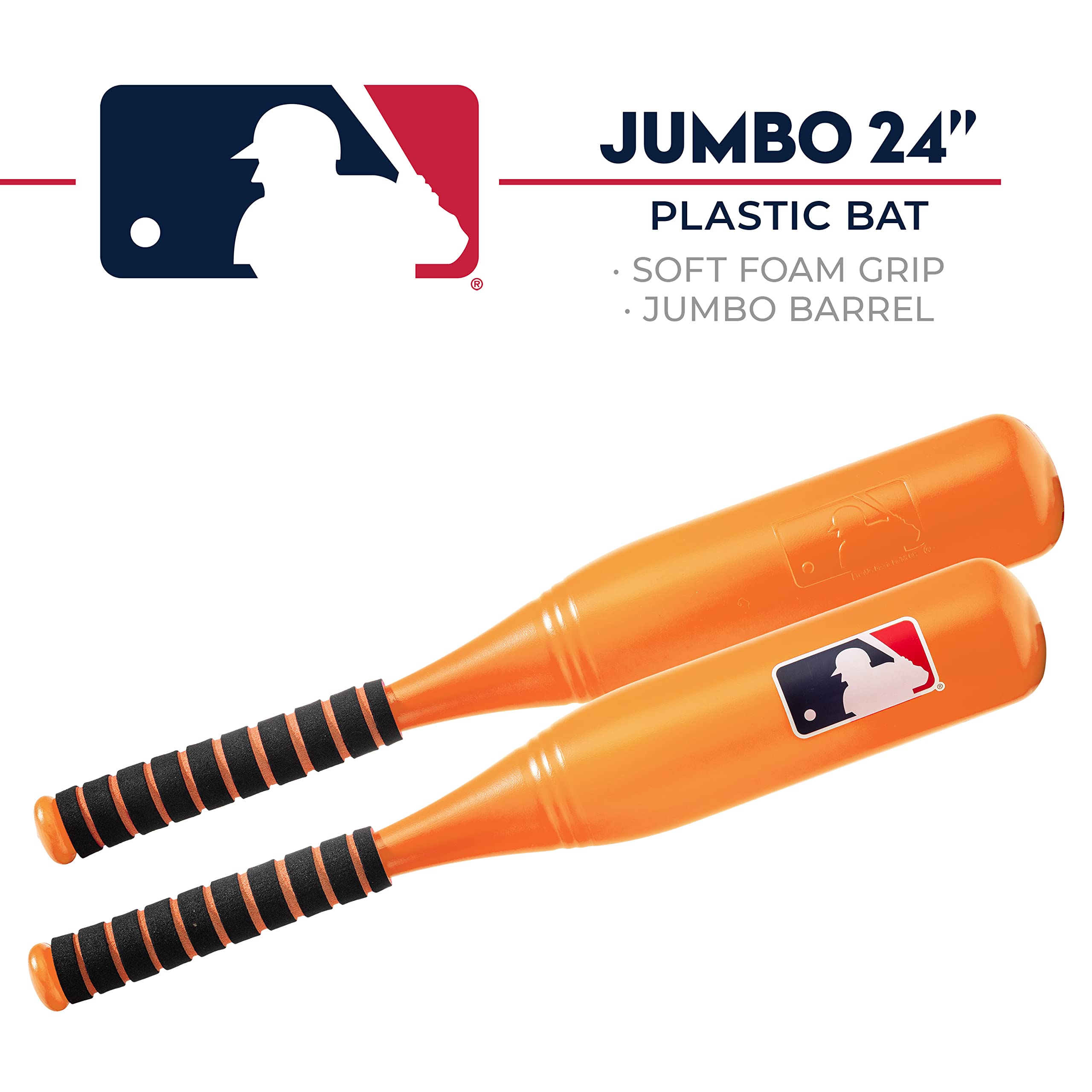The Franklin Sports MLB 24-inch Jumbo Plastic Bat is the perfect JUMBO size for kids learning to play baseball! Featuring a 3.25" sweet spot, the jumbo-sized barrel offers massive hitting power to give kids confidence as they're beginning to practice hitting. The bat also features a textured, soft foam grip handle making it comfortable on kids' hands when learning to play. Perfect for backyard play, bring your Play at Home to the next level with the Officially Licensed MLB 24-inch Jumbo Baseball Bat! (Colors may vary)