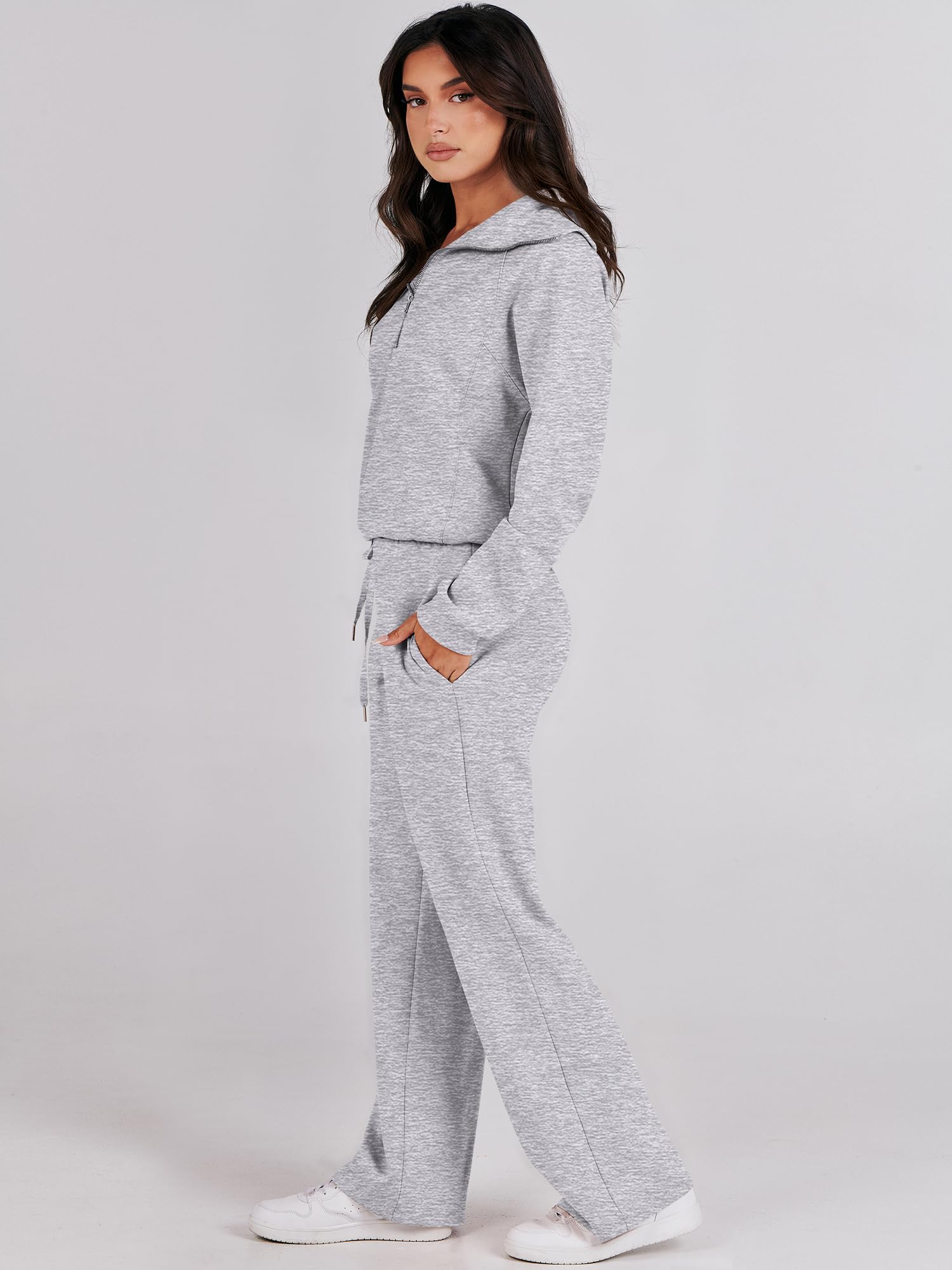 Features - This Sweatsuit Set featured half zip long sleeve oversized sweatshirt & high waist drawstring wide leg sweatpant for a 2 piece tracksuit set. Matching set sweatpants 2 piece sweatsuit are great for daily life, gym, sport, running, active, lounge, travel, beach, fitness and home.