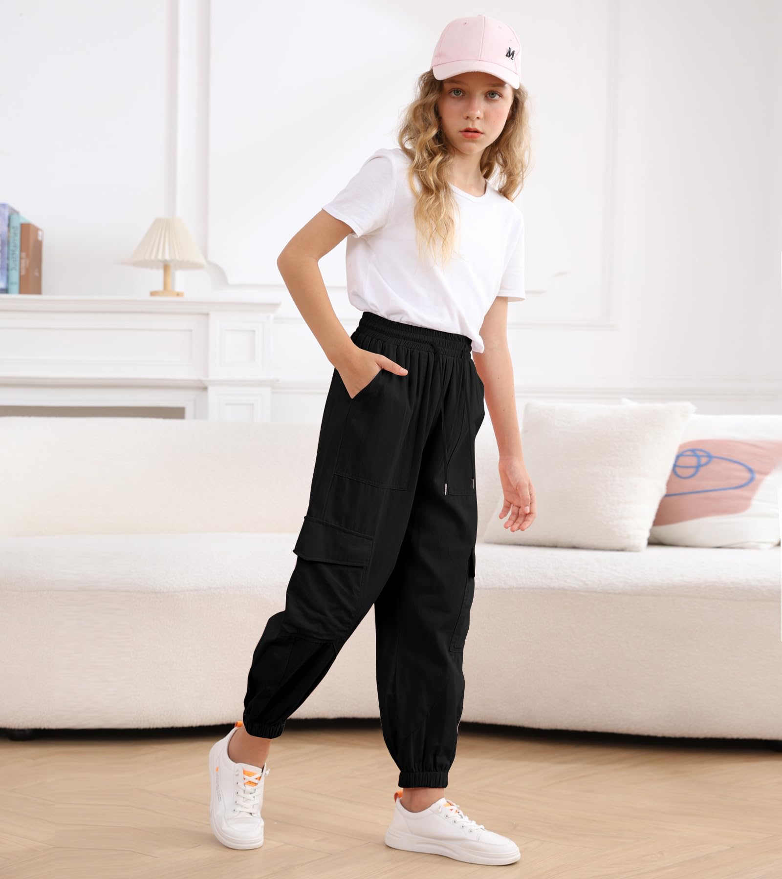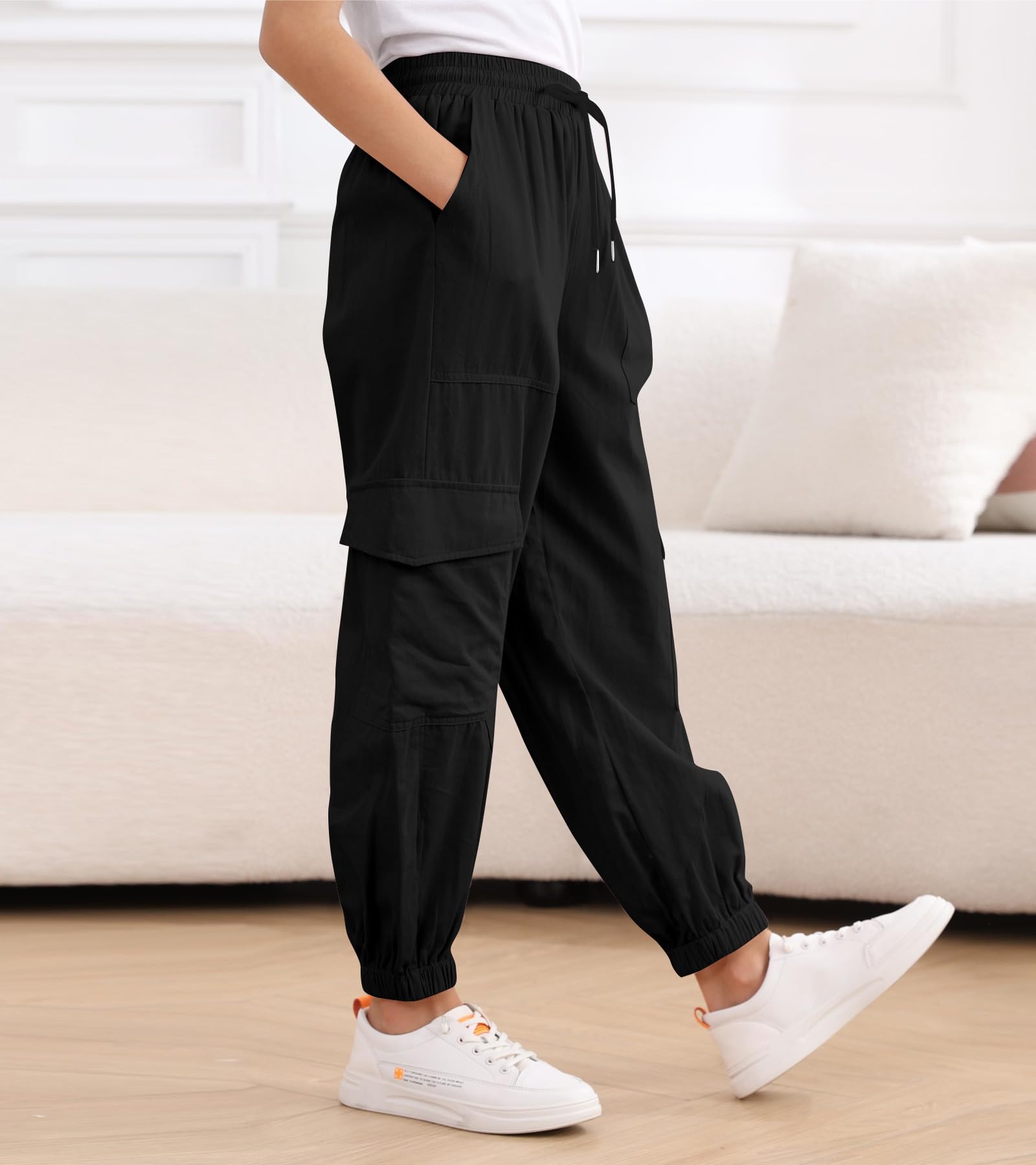 Fabric: Girls cargo pants are made of cotton/polyester fabric, which is skin-friendly and lightweight, providing a comfortable wearing experience, the casual joggers are suitable for all seasons