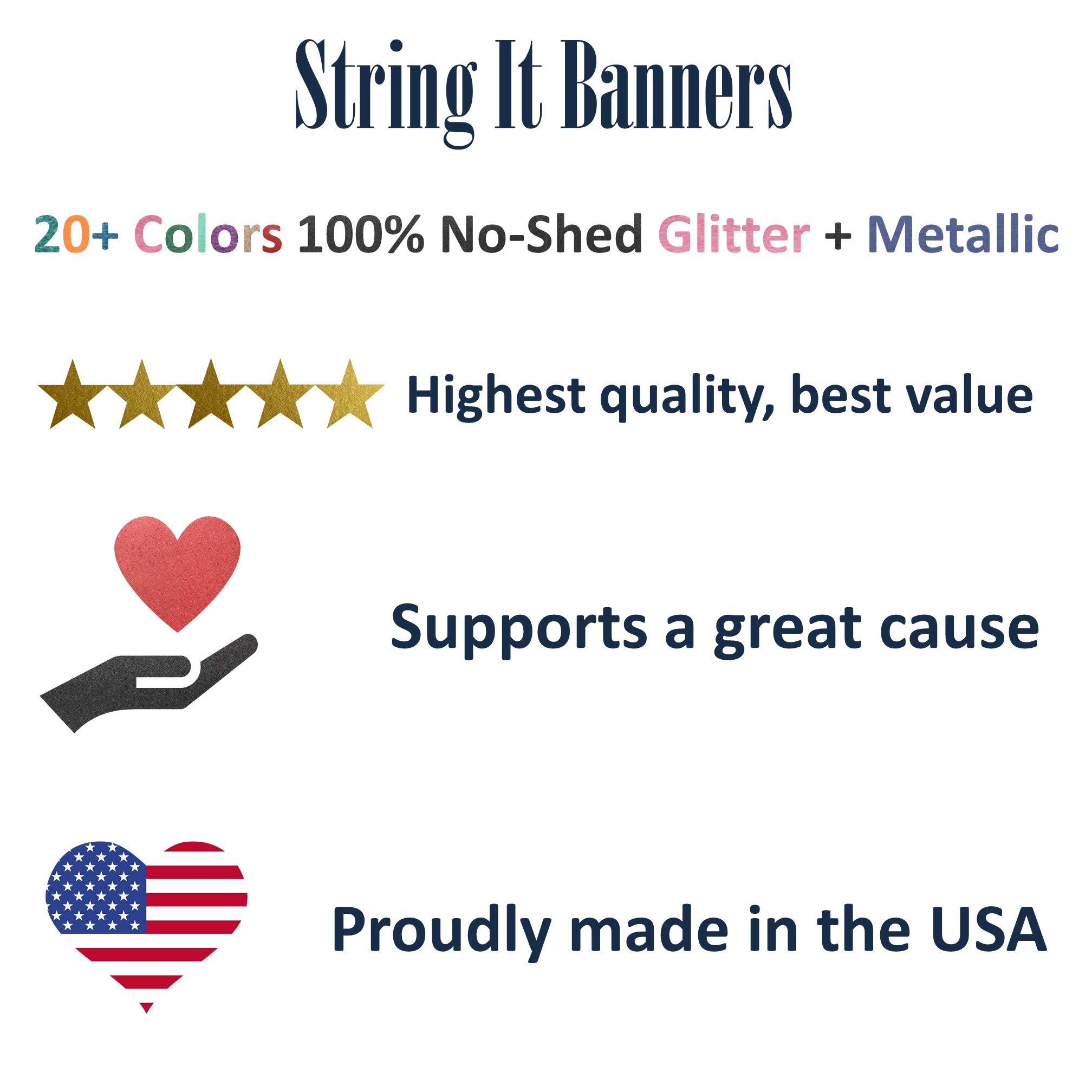 * Letters are evenly pre-punched and pre-knotted white string is provided. Assembly Options: Prestrung or DIY w/ String Included